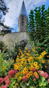 Hinter der Herz Jesu Kirche in Schildgen befindet sich der ehemalige Pfarrhausgarten, der mit seinen Pflanzen, Beeten, Bienenstöcken und Rückzugsorten für Tiere Biodiversität und Artenvielfalt fördert und zugleich als Begegnungsort für Menschen dient.
