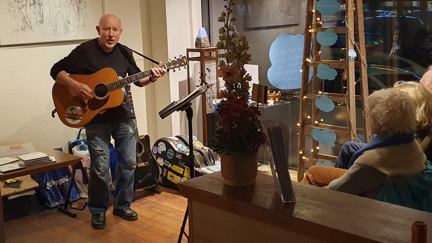 Ein buntes Dutzend bekannter Song-Klassiker der 50er/60er Jahre präsentierte der Kölner Sänger, Gitarrist und Vorleser Winfried Bode. Dazwischen gab´s „Auf sonniger Straße“ – Kindheitserinnerungen von Joachim Ringelnatz.