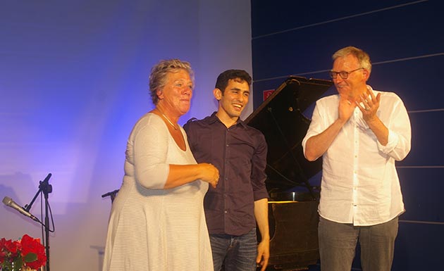 Mit seinem ausdrucksstarken Klavierspiel, seinen Kompositionen und Improvisationen, seiner hohen kehligen Stimme, die unter die Haut geht, aber auch seinem zurückhaltenden, bescheidenen Auftreten begeisterte und beeindruckte Aeham Ahmad sein Publikum.