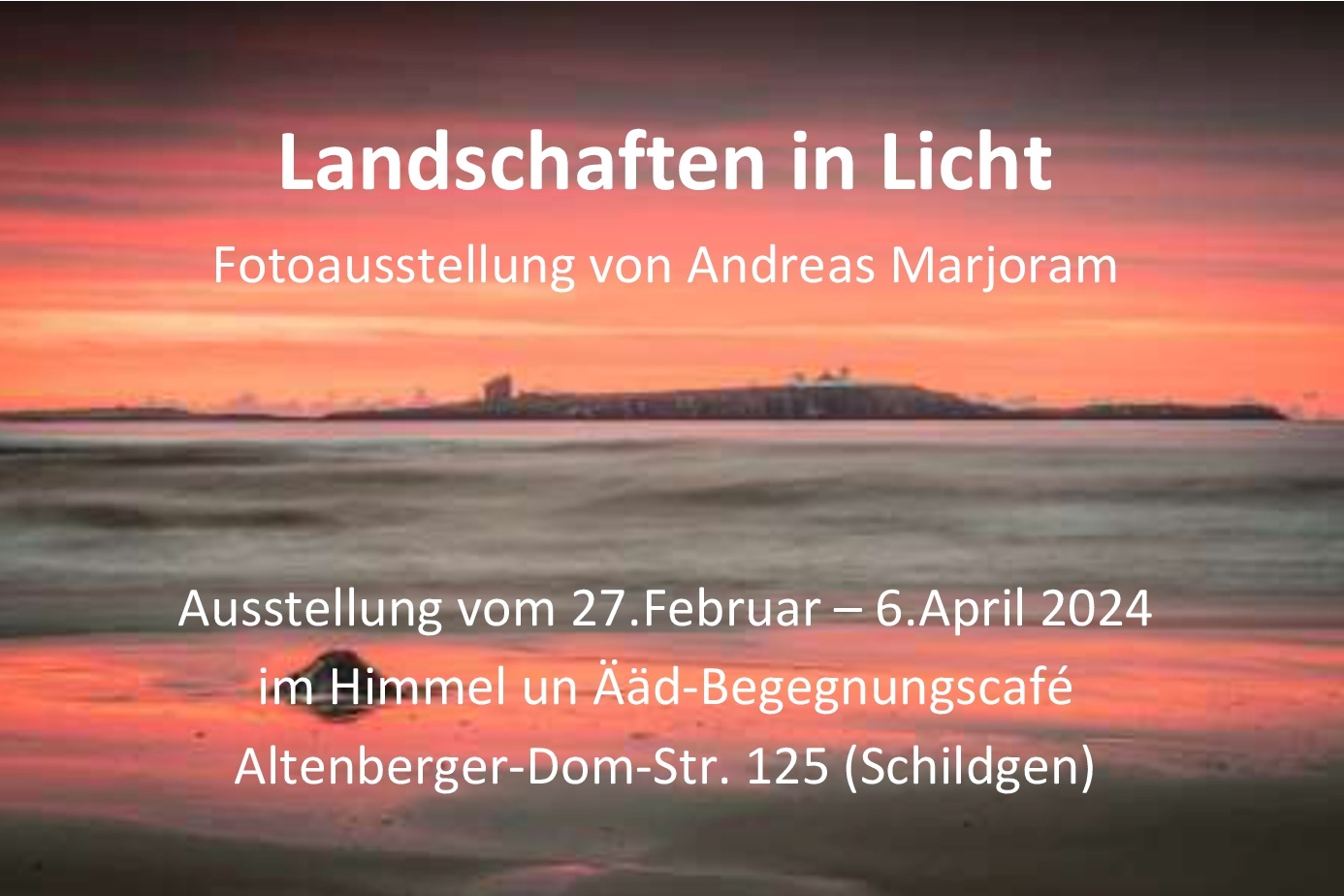 Die Ausstellung „Landschaften im Licht“ von Andreas Marjoram zeigt Landschaftsaufnahmen von verschiedenen Orten dieser Welt, sowohl in Farbe als auch Schwarzweiss. Ein Schwerpunkt ist dabei die Landschaft der Britischen Inseln – hier mag das Wetter zwar nicht immer das Beste sein, es treffen aber dafür geradezu „magische“ Orte mit großartigem