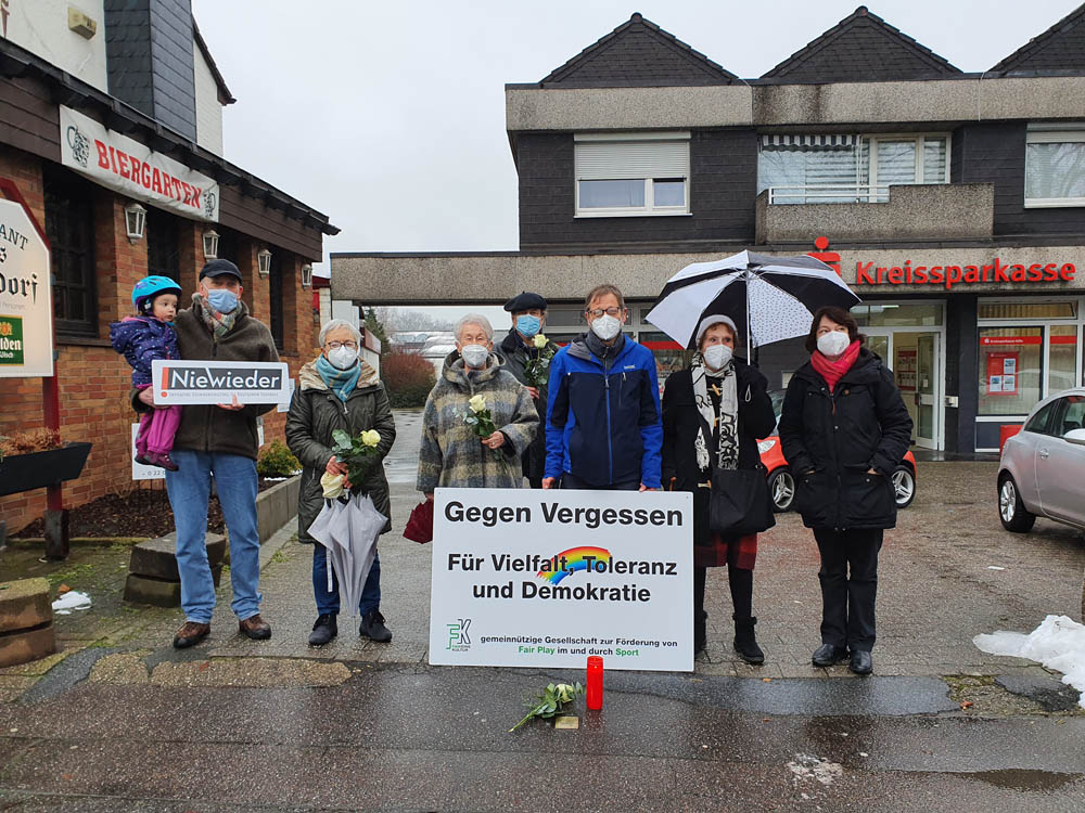 Zum heutigen Holocaust-Gedenktag, dem 76. Jahrestag der Befreiung des KZ Auschwitz hatte das Himmel un Ääd Team in Kooperation mit FAIReinskultur, der gemeinnützigen Gesellschaft zur Förderung von Fairplay, Respekt und Toleranz im und durch Sport, gemeinsam mit Ursula Völkner (77) ihres Großvaters, des jüdischen Arztes Dr. Erich Deutsch an „seinem“ Stolperstein in Schildgen gedacht.