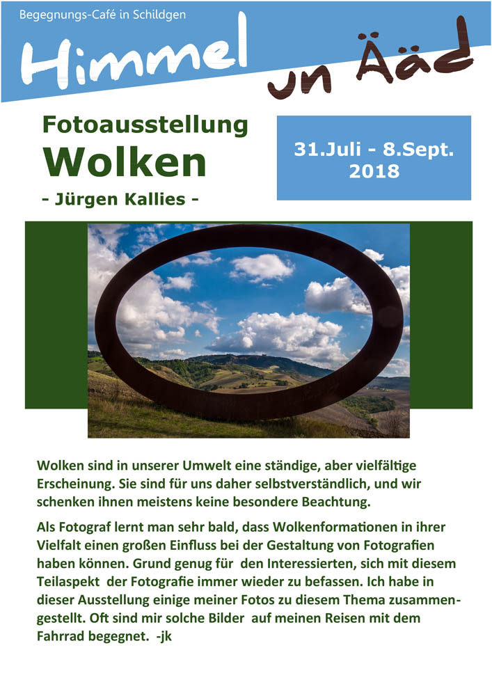 „Wolken“ – neue Fotoausstellung im H&Ä-Café von Jürgen Kallies