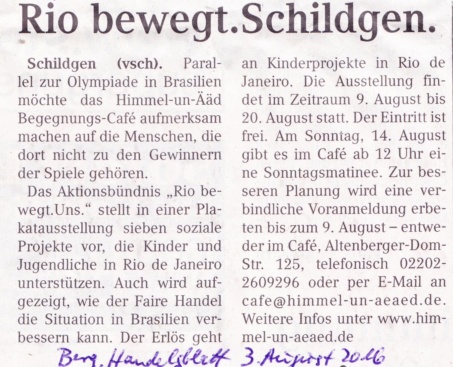 Berg. Handelsblatt: „Rio bewegt.Schildgen.