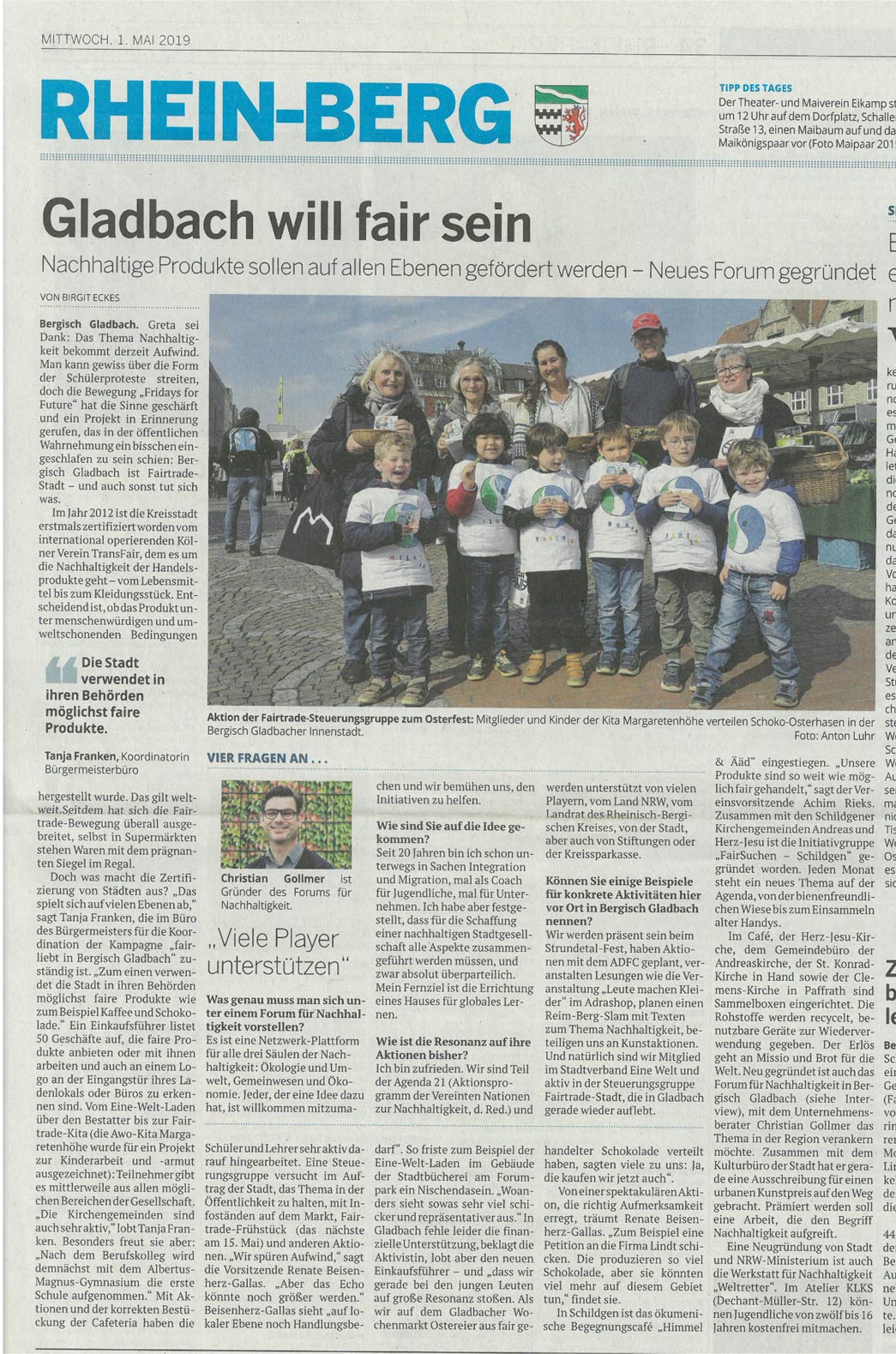 Berg. Landeszeitung, KStA-online: „Fairtrade-Projekte: so will Bergisch Gladbach (noch) nachhaltiger werden.“