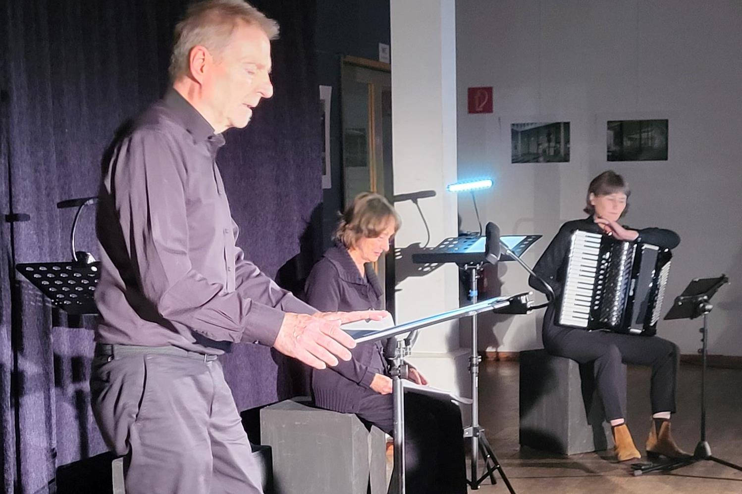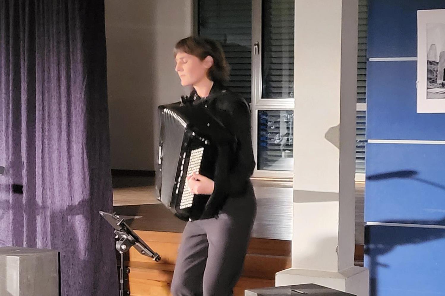 Dorrit Bauerecker begleitete die einzelnen Szenen auf ihrem Akkordeon gekonnt und empathisch, abgestimmt auf die Stimmung der jeweiligen Textpassage.