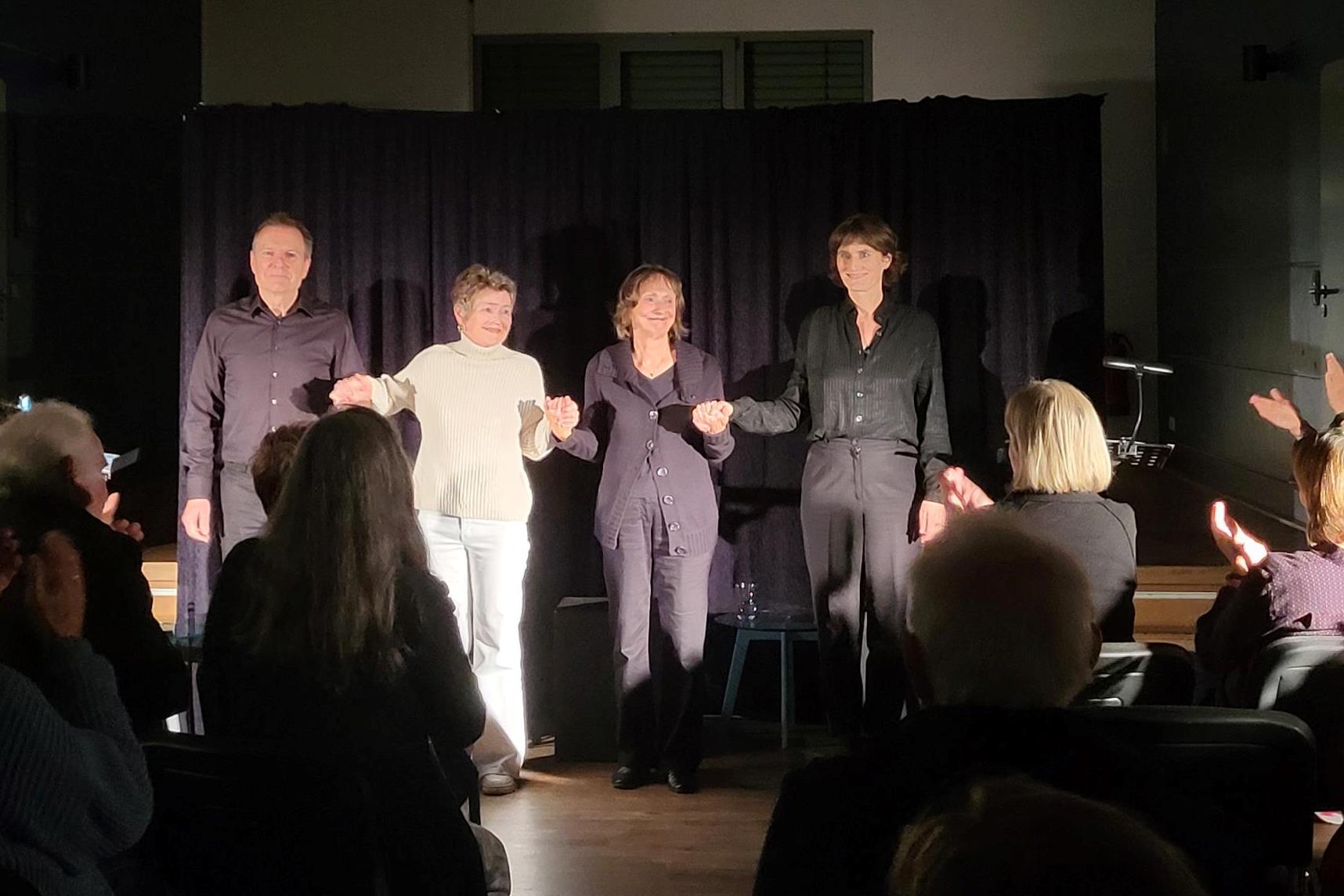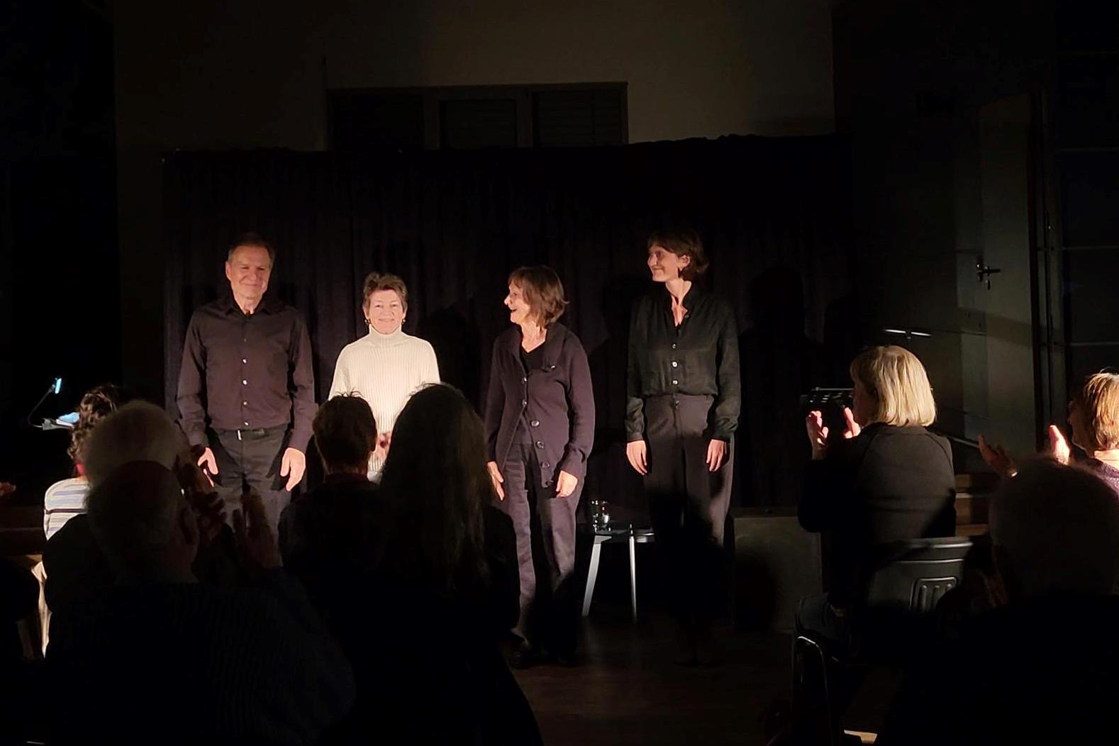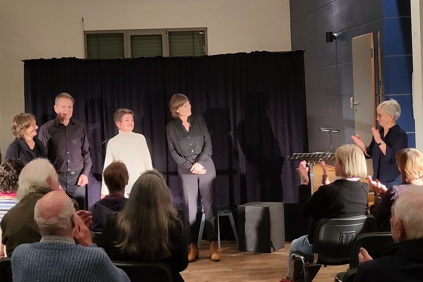 Ein Kulturabend, der eindrucksvoll berührt hat. Die ca. 40 Gäste im Pfarrsaal von Herz Jesu in Schildgen ließen sich von der faszinierenden Sprech- und Schauspielkunst der Romanautorin Marianne Tieves sowie von Petra Christine Schiefer, Uwe Grede und der Akkordeon-Spielerin Dorrit Bauerecker in den Bann ziehen.