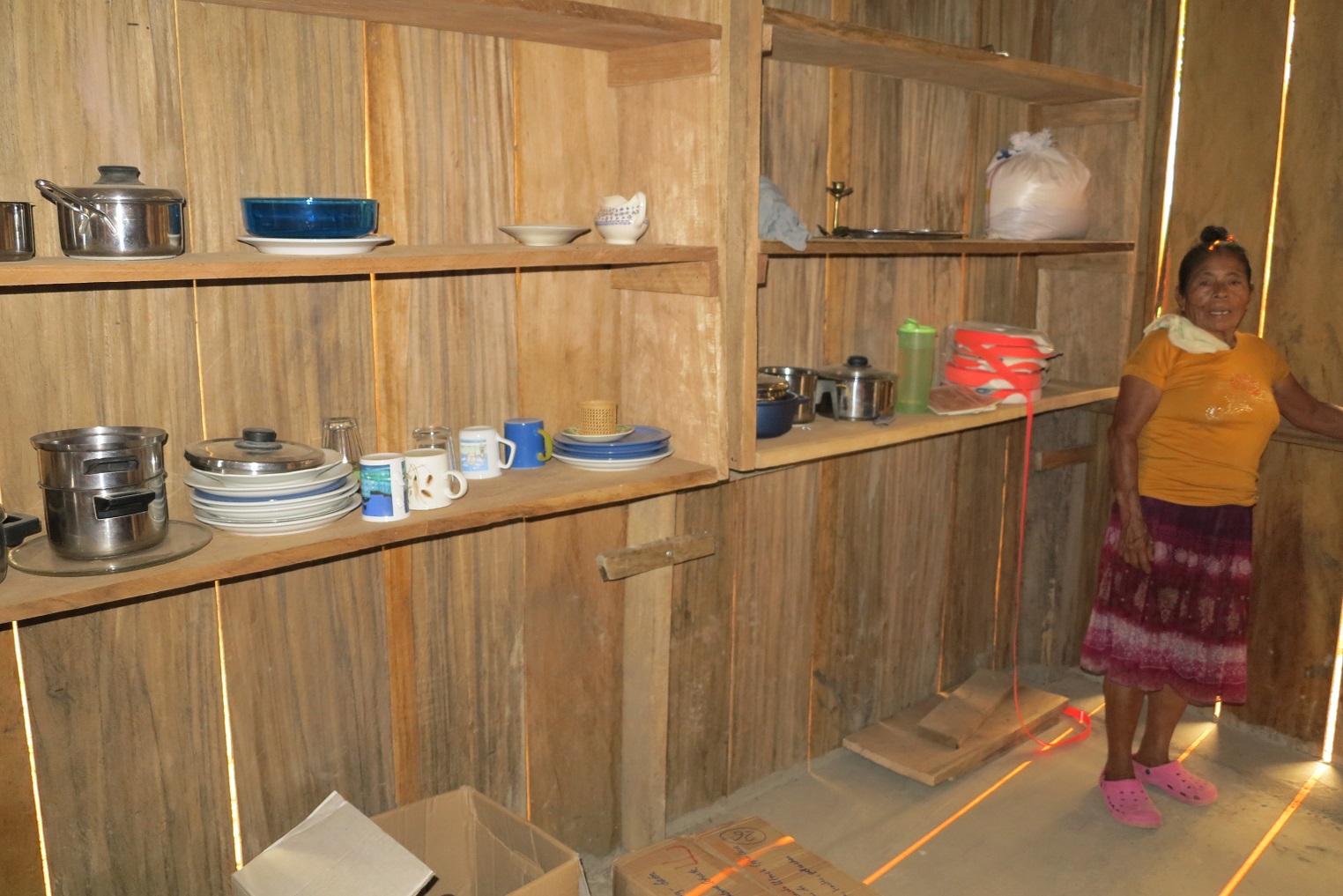 Holz, Zement und alle Baumaterialien für die Hütte mussten in den weiter entfernt liegenden Kleinstädten gekauft und mit dem Einbaum oder Flössen und die letzten Kilometer auf dem Rücken der Männer herbeigeschafft werden; ebenso die Bäckerei- und Caféausstattung, die Altkleider und alles andere, zum Teil auch Sachspenden aus Bergisch Gladbach, die von Ehepaar Schiek organisiert waren.