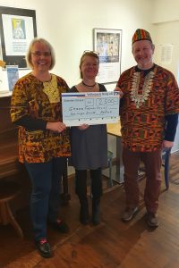 Heute besuchten uns Rosi und Matthias Rusert vom Ghana Freundeskreis e.V., um den symbolischen Spendenscheck über 2.500 Euro aus unserem letztjährigen Quartalsprojekt „Schenke Bänke“ entgegen zu nehmen und uns über ihre Arbeit in Ghana zu berichten. Ihr Betätigungsfeld umfasst z.B. den Aufbau von Kindergärten und Schulen, Versorgung der Einrichtungen mit Mobiliar, Lernmaterialien und IT-Ausstattung sowie Förderung von bedürftigen Kindern durch Ausbildungspatenschaften und Unterstützung von Schulkindern und Studierenden in besonderen Notlagen.
