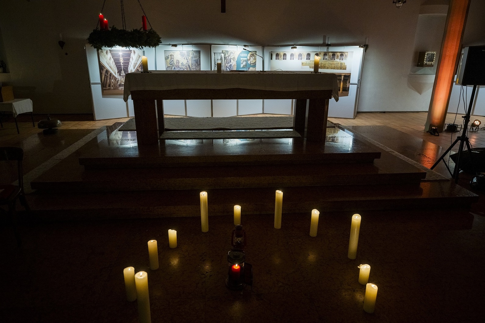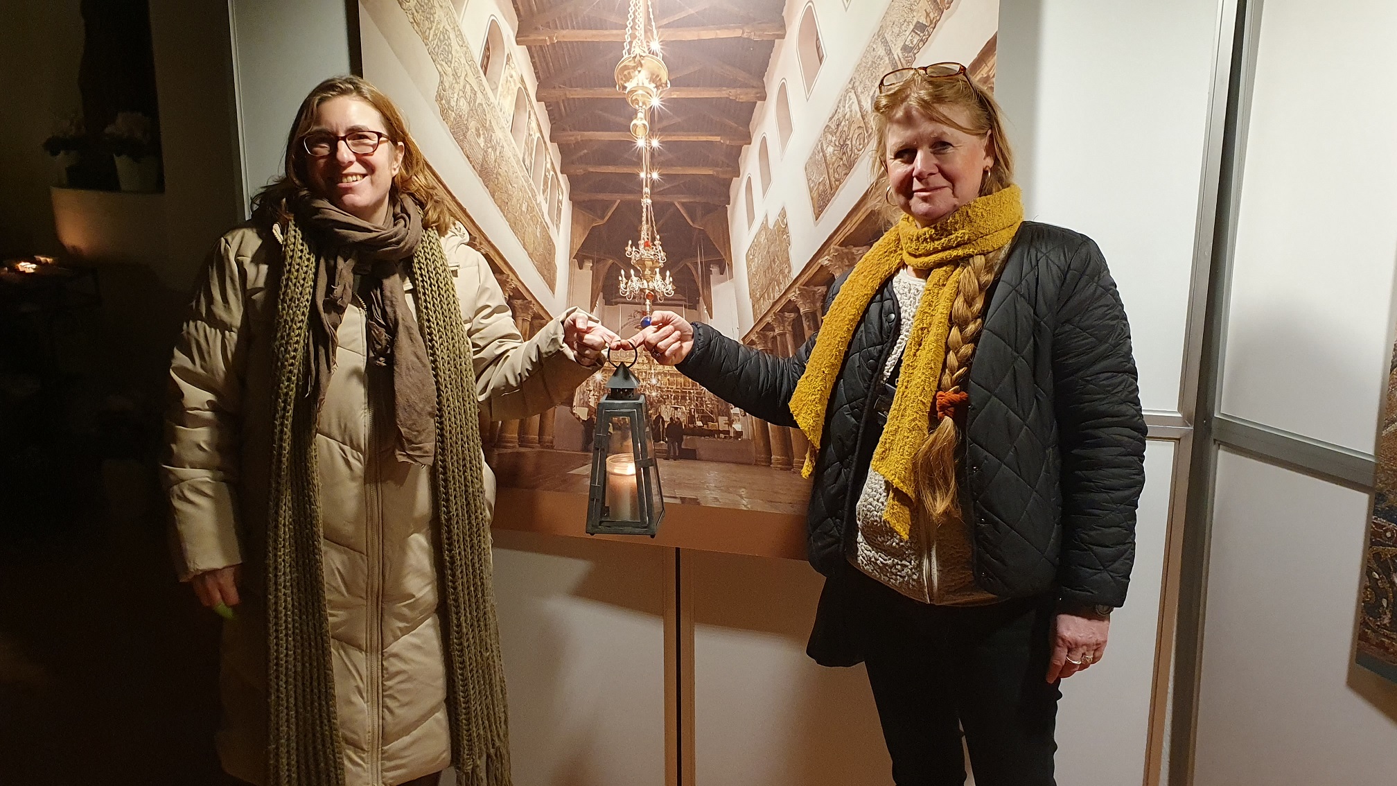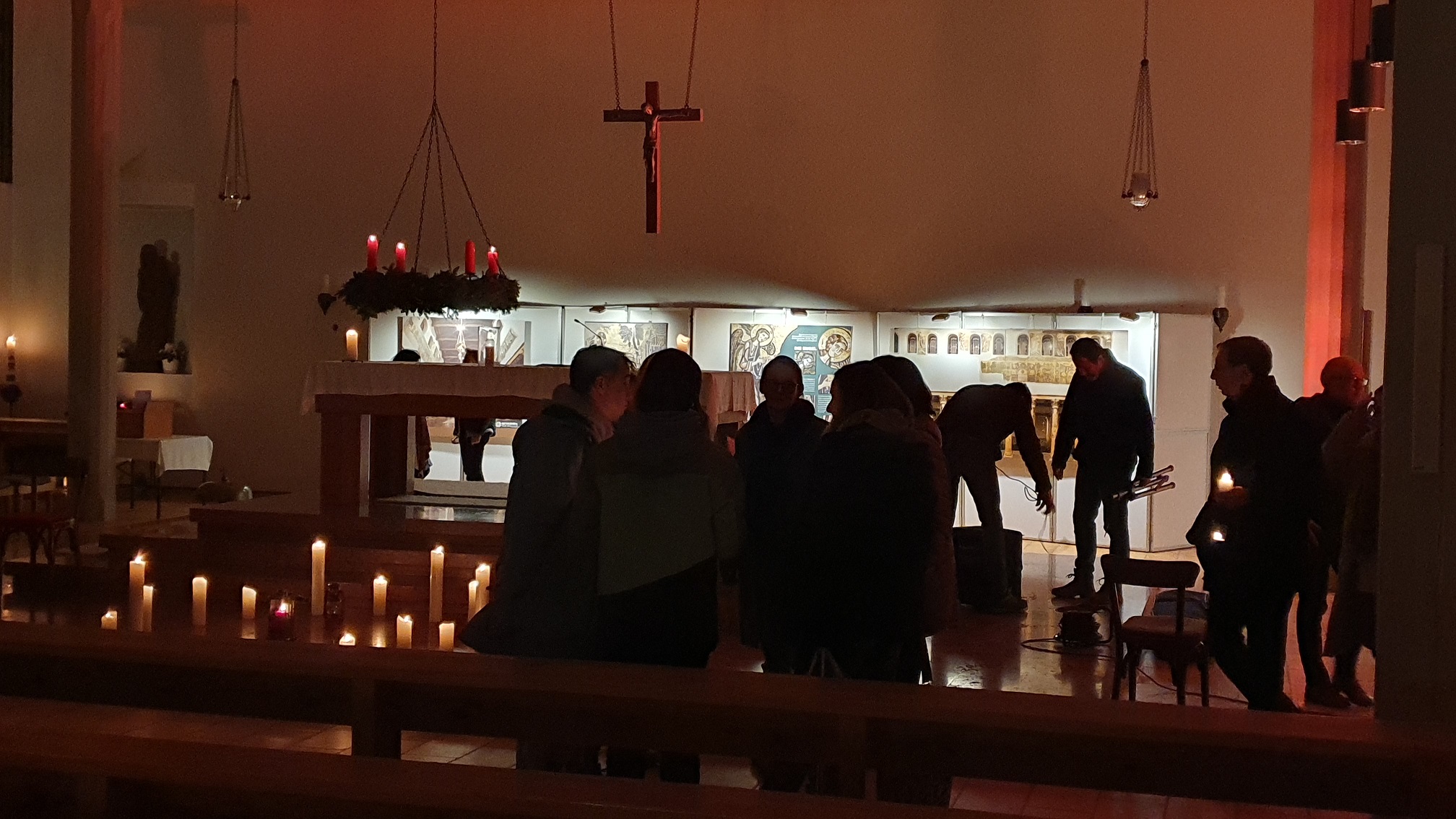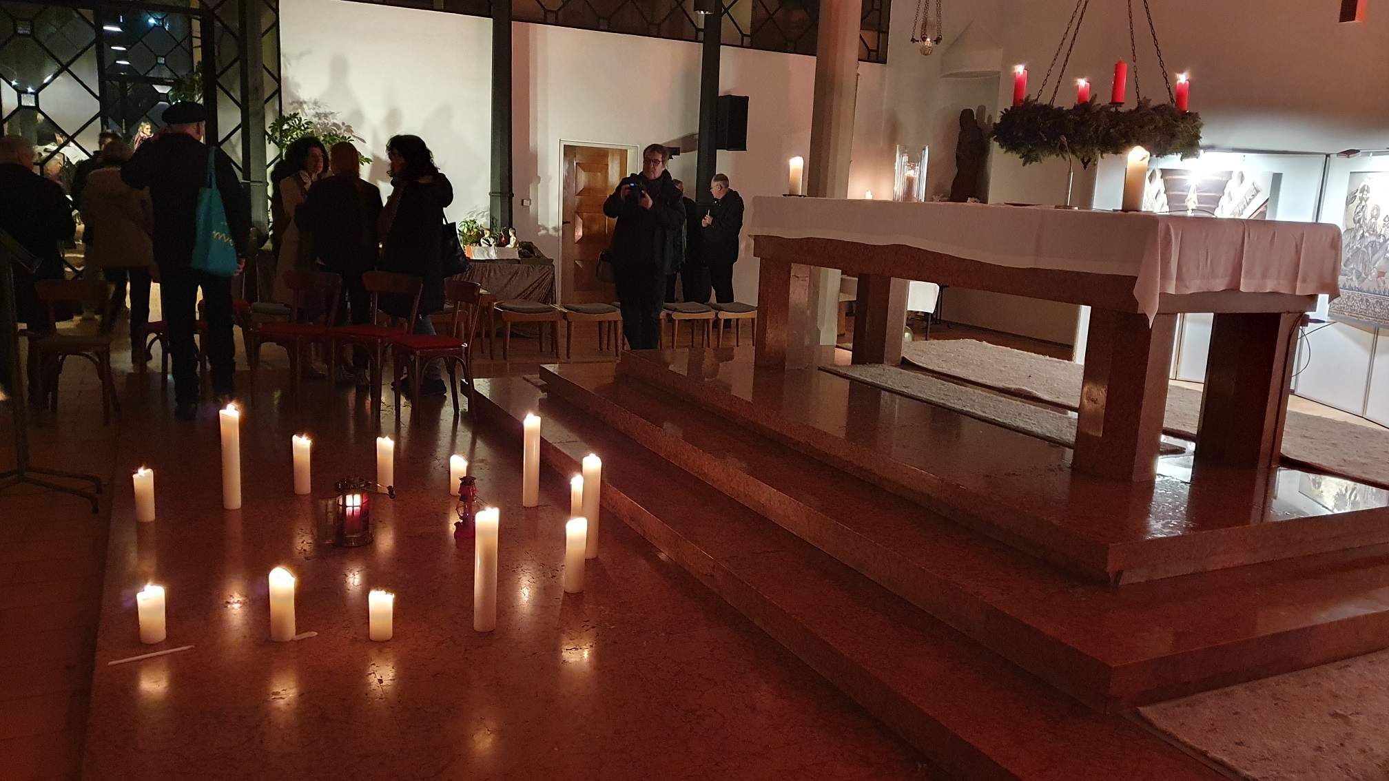 Im Rahmen einer ökumenischen meditativ spirituellen Feierstunde haben wir heute in der Herz Jesu-Kirche das Friedenslicht in unserer Ausstellung der Geburtskirche begrüßt – das Licht aus Bethlehem in der Bethlehem-Ausstellung in Schildgen, wunderbar!