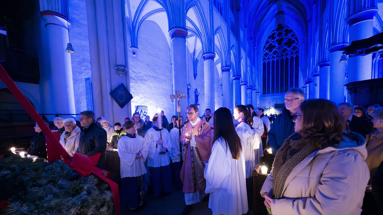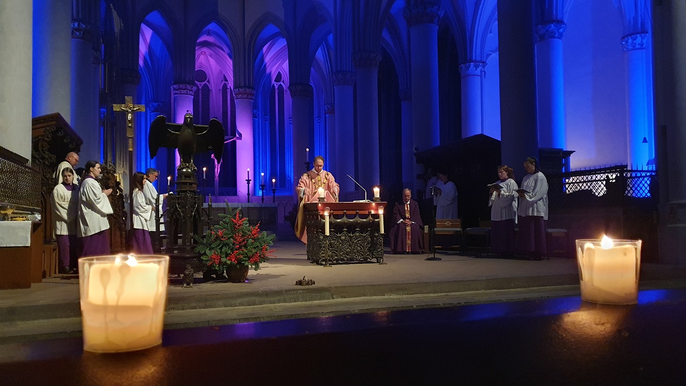 Mit einer kleinen ökumenischen Gruppe haben wir am Sonntag das „Friedenslicht aus Bethlehem“ im Rahmen der Aussendungsfeier aus dem Altenberger Dom nach Schildgen in die Herz Jesu-Kirche geholt.