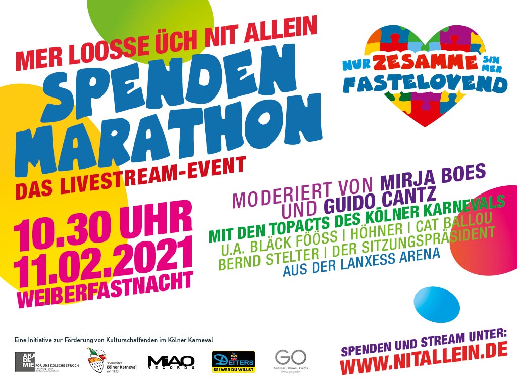 Nur zesamme sin mer Fastelovend – „Mer looße üch nit allein“ war eine Spendenaktion für durch die Corona-Pandemie in Not geratene Veranstaltungstechniker, Karnevalskünstler und ehrenamtlich arbeitende Tanzgruppen und Spielmannszüge. Initiiert wurde diese Aktion vom Festkomitee Kölner Karneval in Kooperation mit weiteren Partnern und prominenter Unterstützung von namhaften Kölner Künstlern,