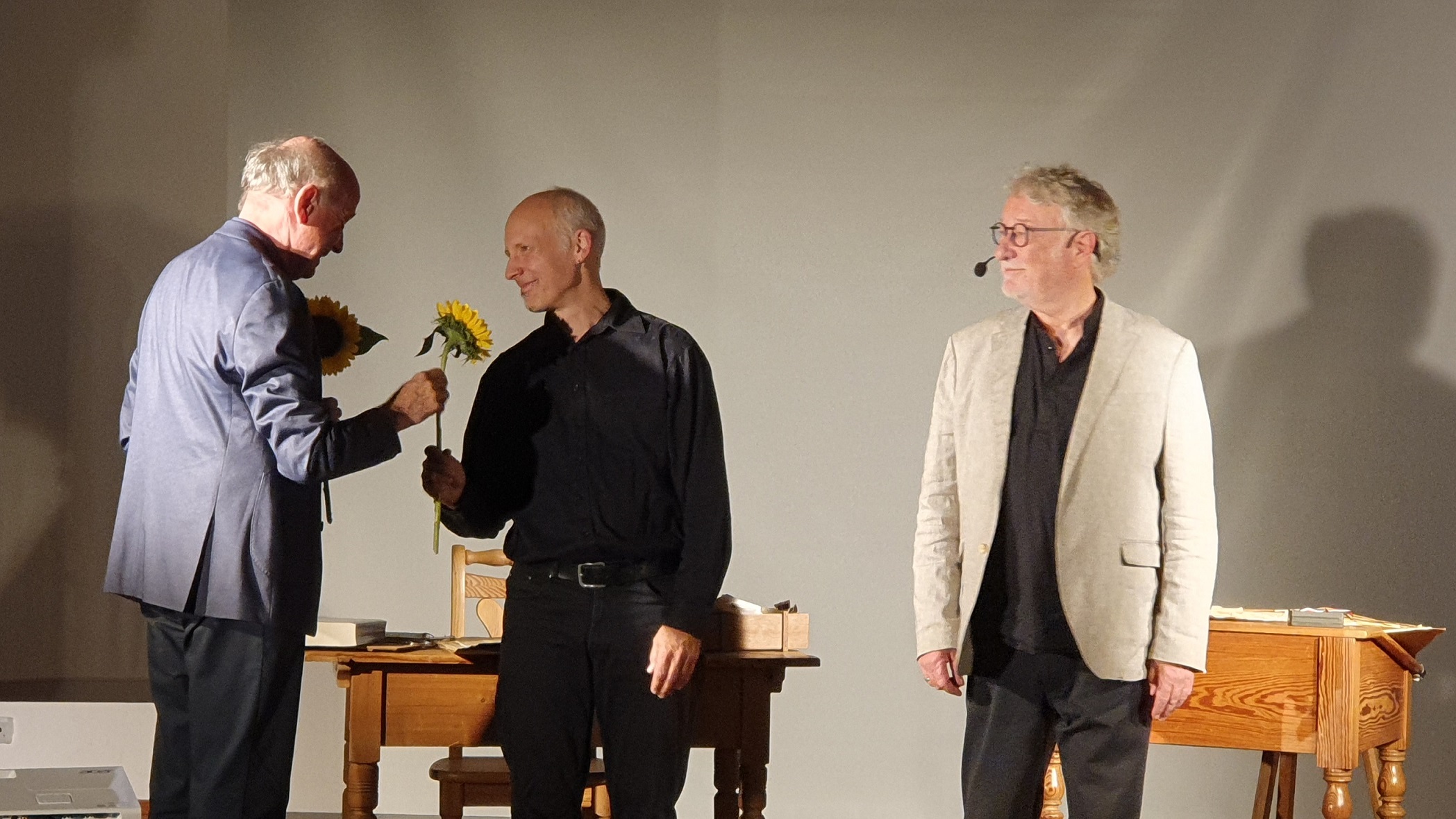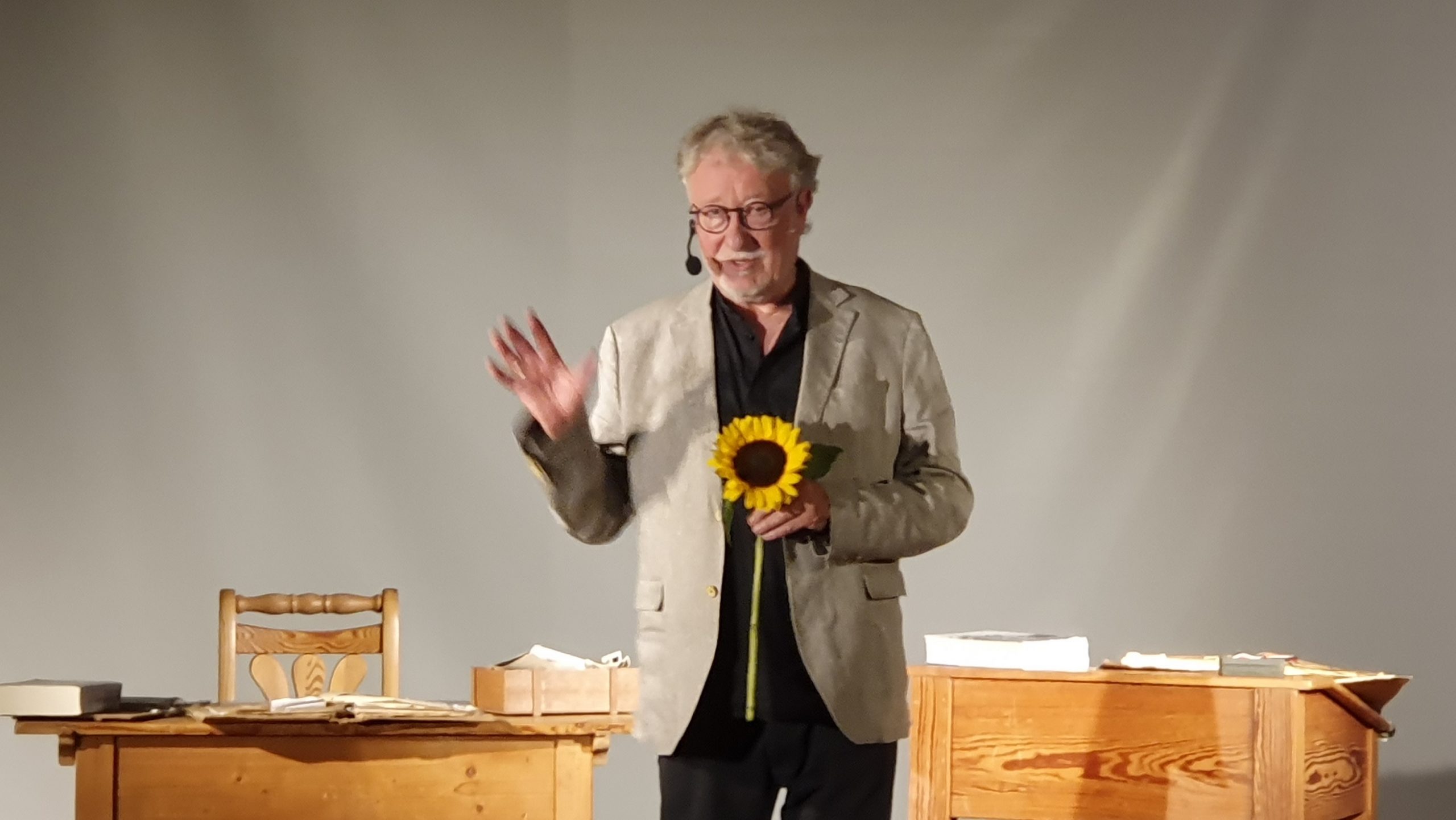 Heinz-D. Haun: „Am 12. September hatte ich abermals die Gelegenheit – diesmal im Pfarrsaal Herz Jesu – die Geschichte meiner Eltern in den Jahren 1939 – 1949 zu erzählen. Holger Faust-Peters begleitete mich dabei auf dem Cello. Auch, wenn wir gerne ein paar Zuschauer und Zuschauerinnen mehr gehabt hätten, war es doch auch für mich eine sehr dichte, intensive Aufführung; ich spürte nachhaltig, wie sehr die Menschen emotional „mitgingen“.
