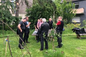 Im Rahmen ihrer Exerzitien besucht die von Pfarrer Bernards betreute Gruppe von Motorradfahrer:innen spirituelle Orte – Klöster, besondere Kirchen, andere besondere Orte und heute ist unser Himmel un Ääd-Begegnungscafé als spiritueller Ort auserkoren. Welch eine Auszeichnung und Ehre.