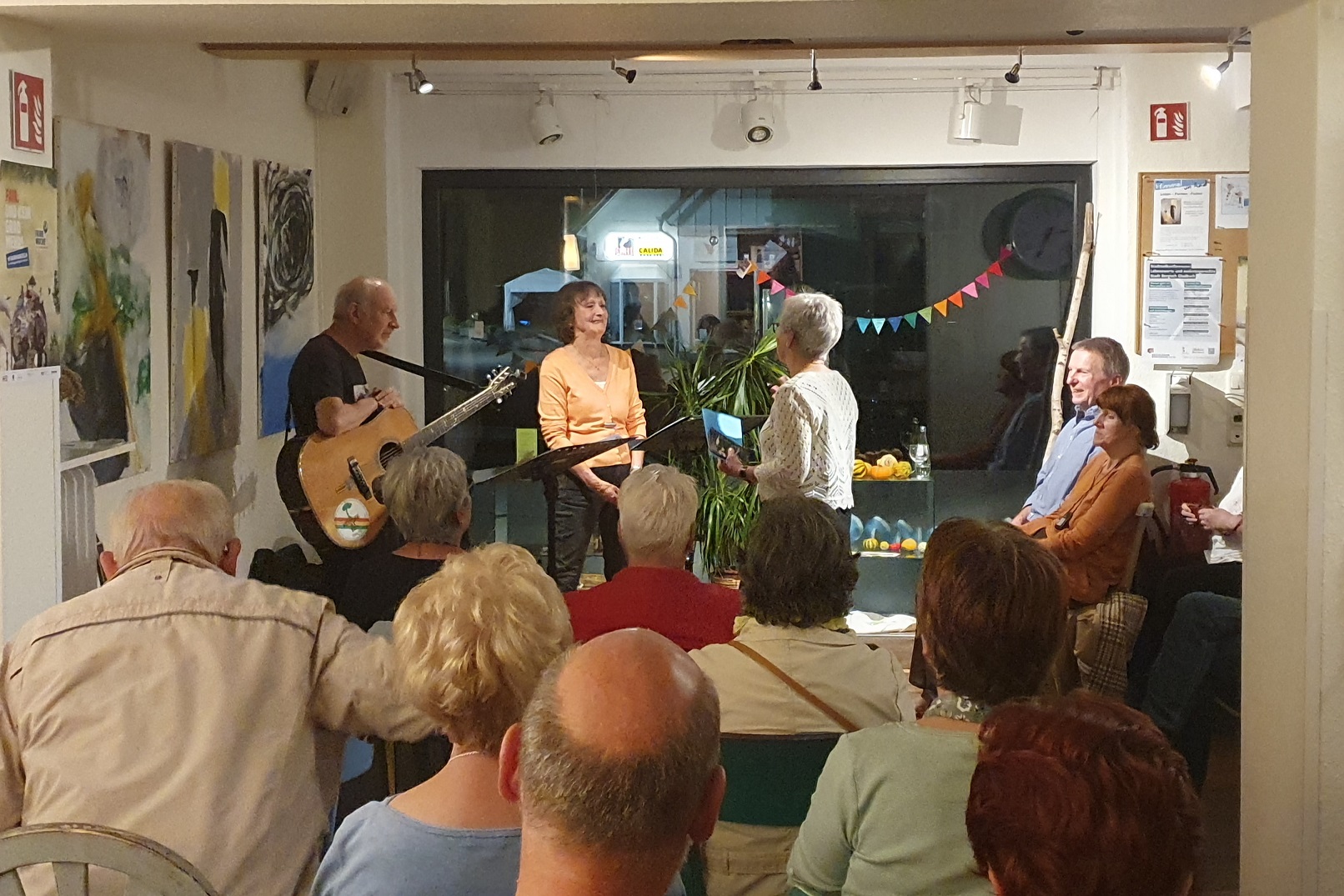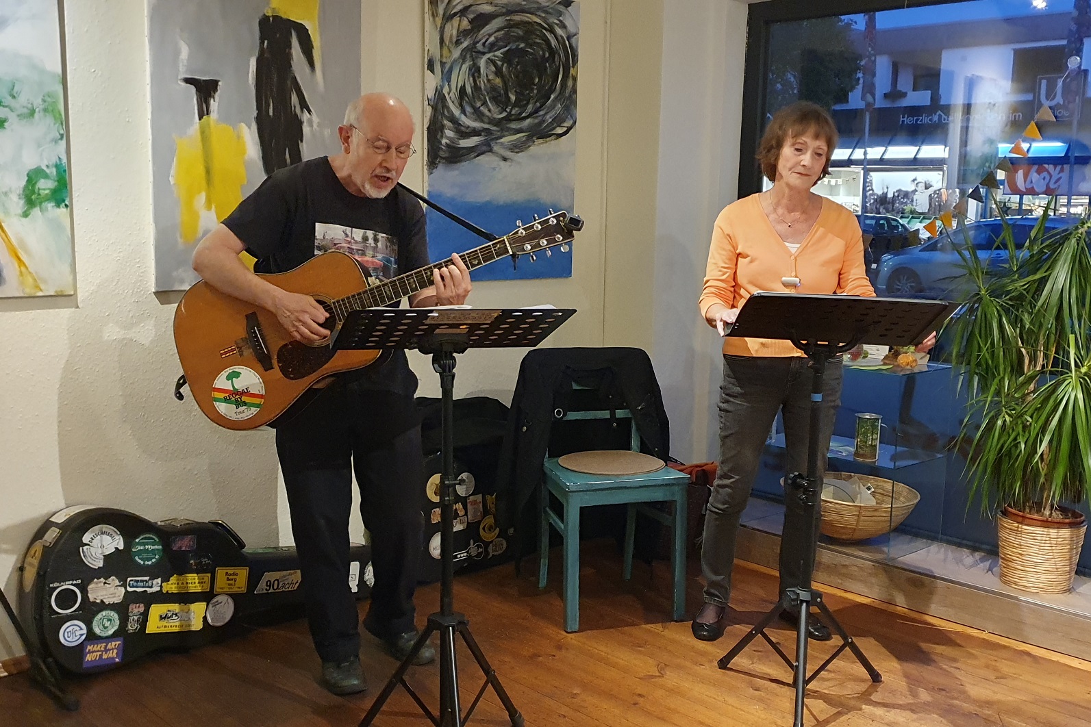 Mit diesen Worten begann die SongLesung von Winfried Bode und Petra Christine Schiefer. Wer kennt sie nicht, die berühmten Anfangsworte von „Sound of Silence“ von Simon and Garfunkel?