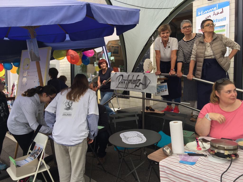 Die Spielbaustelle e.V. sorgte für spielerische Unterhaltung; die „Trostteddys“ und der „Dorfplatz“ informierten vor dem Café über ihre Arbeit.