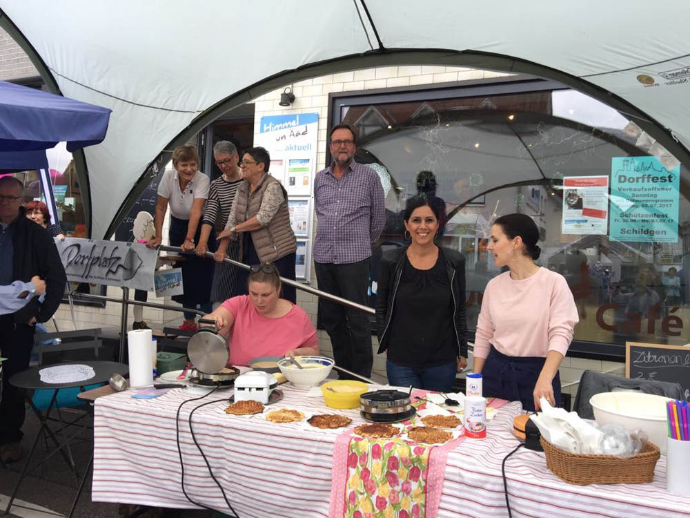 Leckere Waffeln, unsere schon traditionelle selbstgemachte Bio-Zitronenlimo, Kuchen, Kaffee, gastliche und gute Atmosphäre und viele, viele zufriedene Gäste.