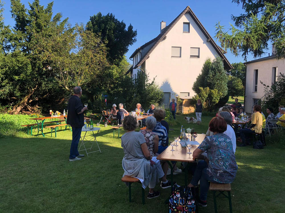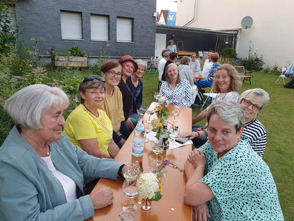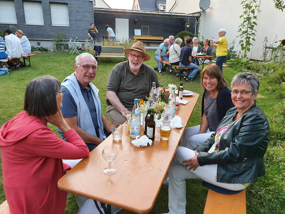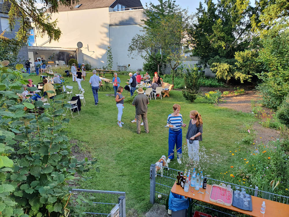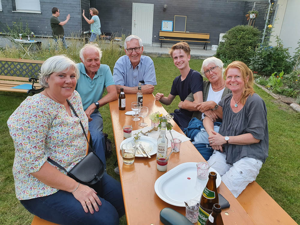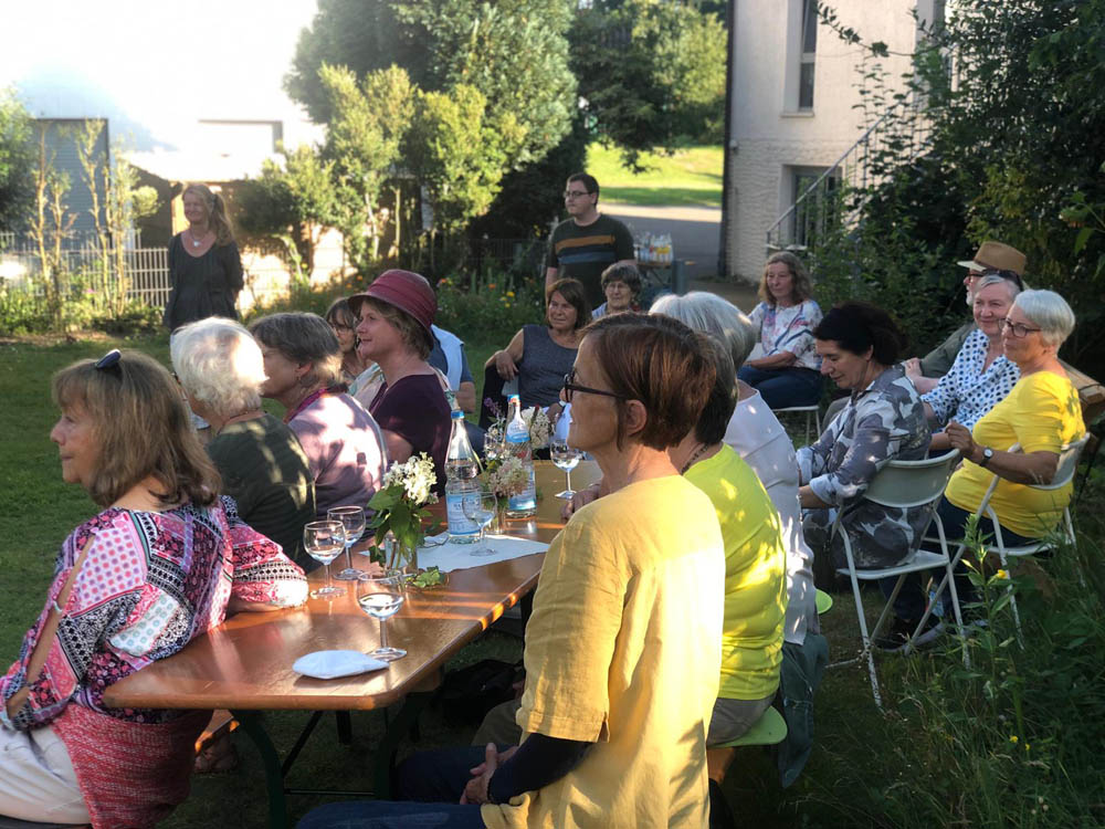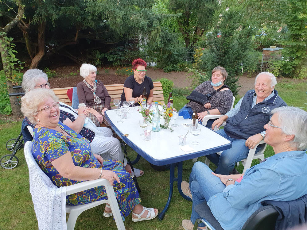 Wir haben uns sehr gefreut, nach so vielen Monaten endlich mal wieder in unserer großen Ehrenamtsrunde zusammen kommen zu können. Bei bestem spätsommerlichen Wetter haben wir schöne gemeinsame Stunden im Garten der Begegnung zwischen Stauden- und Kräuterbeeten, Bienenstöcken und Blühwiese verbracht. Es wurde viel erzählt, gelacht und natürlich auch lecker gegessen. Auch eine gerade nach kurzer schwerer Krankheit verstorbene Ehrenamtlerin haben wir in unsere Mitte geholt, ihrer gedacht und auf sie angestoßen.