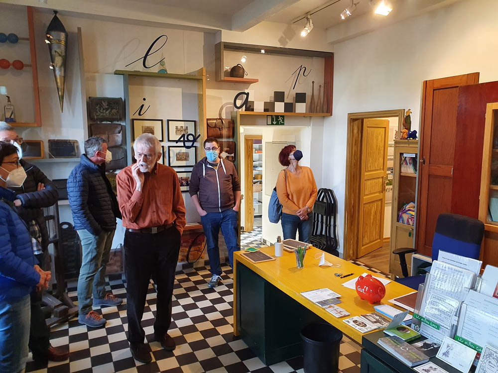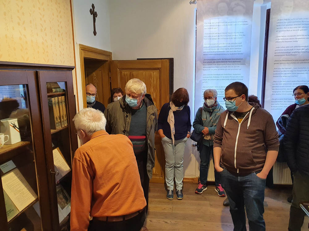Auf Einladung von Herrn Dr. Peter Joerißen, dem Vorsitzenden des Fördervereins des Schulmuseums Bergisch Gladbach e. V., hatten sich heute über 20 neugierige H&Ä-Ehrenamtler im Katterbacher Schulmuseum eingefunden. Kenntnisreich und engagiert führte uns Dr. Joerißen durch die thematisch eingerichteten Museumsräume der ehemaligen Lehrerwohnung – Schulgeschichte von 1872, über Kaiser- und Nazizeit, Schulreform in den 60ern, Anfänge des Computerzeitalters bis in die aktuelle Corona-Zeit. Einfach beeindruckend; das hatten viele von uns nicht erwartet. Eine interessante und lehrreiche Stunde, die zu einem Folgebesuch und zur Vertiefung animiert hat.