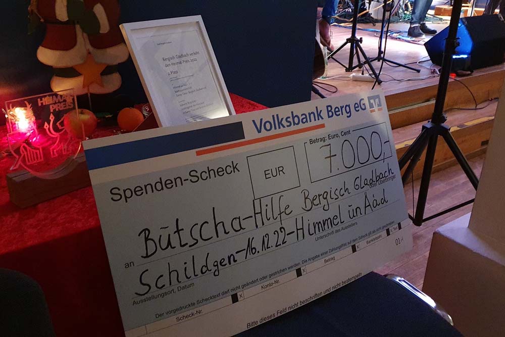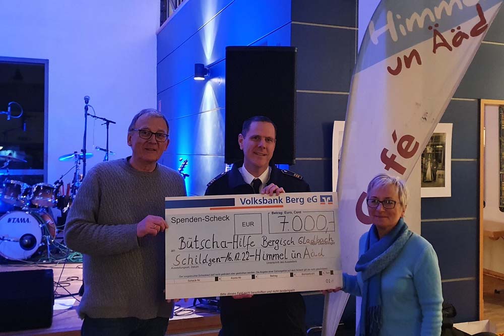 In der ersten Pause hatten wir dann die große Freude, einem weiteren Städtepartnerschaftsverein – nämlich dem der ganz neuen Partnerschaft mit Butscha – einen symbolischen Spendenscheck über stolze 7.000,- Euro zu überreichen. Jörg Köhler, der Chef der Bergisch Gladbacher Feuerwehr und Mitinitiator dieser Partnerschaft nahm den Scheck gerne entgegen und berichtete kurz vom letzten Hilfskonvoi in die Ukraine. Möglich wurde diese zweite „Butscha-Spende“ von H&Ä durch die große Spendenbereitschaft unserer Gäste und Freunde. Das Geld konnte schon hilfreich für dringend erforderliches technisches Equipment wie Stromgeneratoren etc. in Butscha eingesetzt werden, so Jörg Köhler.