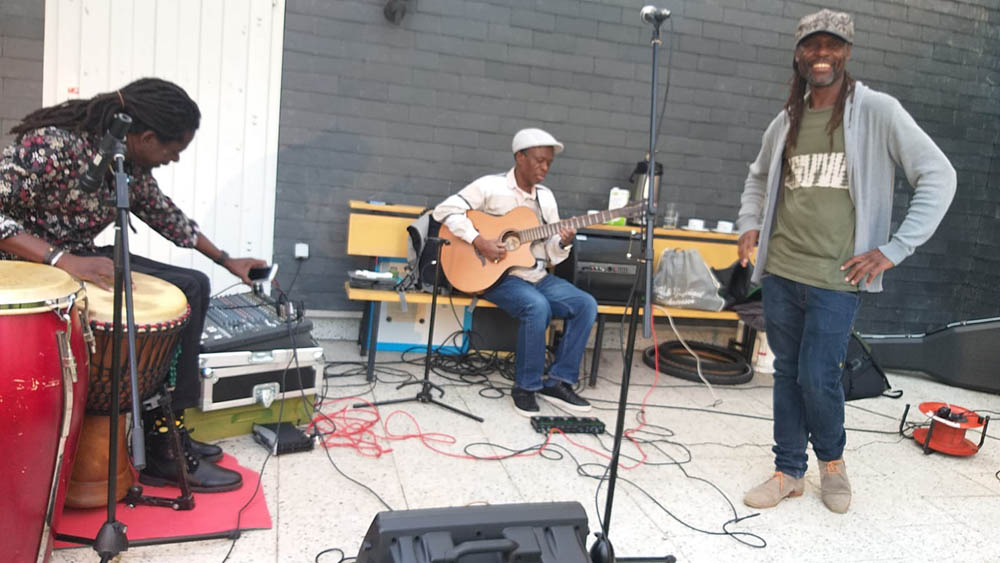 Mit tollem Afro-Pop, -Jazz und einem Hauch Reggae nahmen Steven Ouma (Gesang), Mandjao Fati (Gitarre) und Seydina Ndoye (Percussion) die zahlreich erschienenen Gäste mit auf eine musikalische Reise in ihre Heimat. Für zwischendurch hatte das H&Ä-Team leckere Snacks und kalte Getränke vorbereitet.