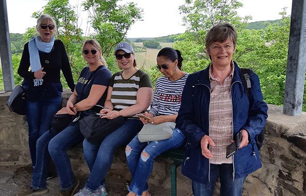 Mit großer Gruppe erwartungsvoller Ehrenamtlerinnen und Ehrenamtlern brachen zu unserem „Frühjahrs-Dankeschönausflug“ auf. Diesmal ging´s nach Ahrweiler; bei schönstem Maiwetter wanderten wir zunächst auf dem Rotweinwanderweg zur „Bunten Kuh“, dem bekannten Aussichtsturm über Walporzheim. Nach einer fröhlichen Picknickpause wurde anschließend der ganz in der Nähe befindliche ehemalige Regierungsbunker besucht. Nach einer ausführlichen und sehr informativen Führung durch die aktiv (zum Glück) nie genutzte und Ende der 1990er Jahre still gelegte Anlage, die seit 2006 als Museum zum Europäischen Kulturerbe erklärt wurde, ging es am frühen Abend in ein benachbartes Weinrestaurant. Hier wurde der Ausflugstag bei gutem Essen und leckeren Getränken ausführlich „besprochen“, und wir hatten viel Spaß miteinander. Das Resumee war einhellig: es war eine gelungene „Auszeit“.
