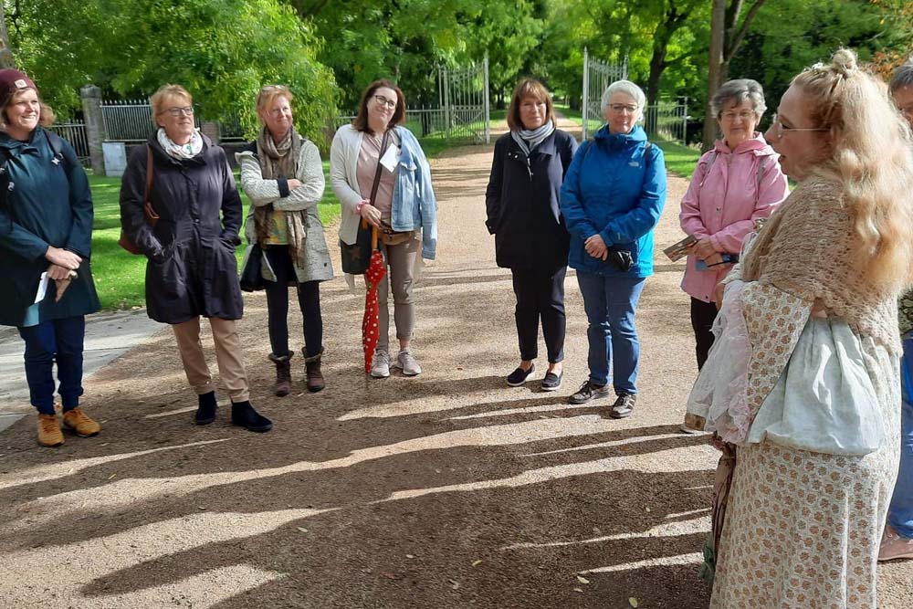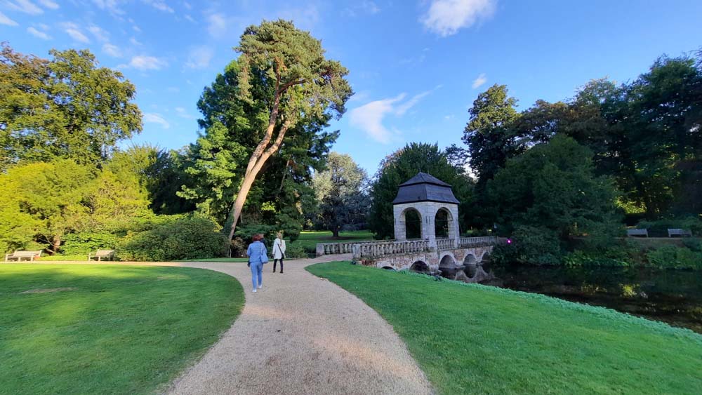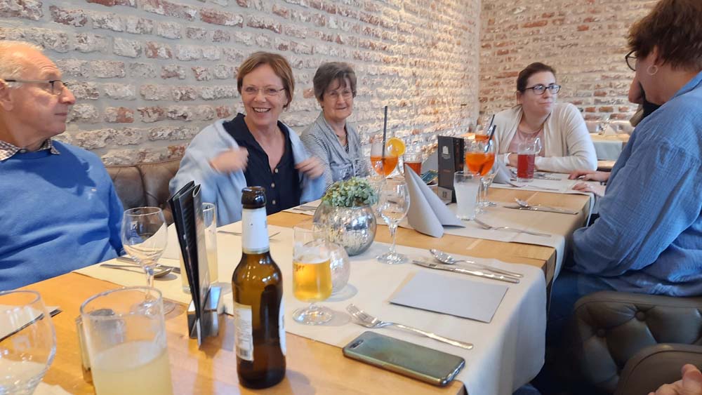 Nach diesem historischen Exkurs konnten wir Blicke in die Schaugärten des Schlossparks werfen. Trotz der langen Sommertrockenheit strahlten zum Beispiel der Dahliengarten, das Baumhoroskop oder der Asia-Schaugarten Atmosphäre und das Gelingen schöner harmonischer Gartengestaltung aus. In der „Remise“ des Schloss-Restaurants genossen wir anschließend ein vom Service-Team des Restaurants bestens vorbereitetes Abendessen. Wir hatten Zeit, in kleineren Tischgruppen das Essen zu genießen, zu plaudern und neue Himmel un Ääd – Pläne zu schmieden.