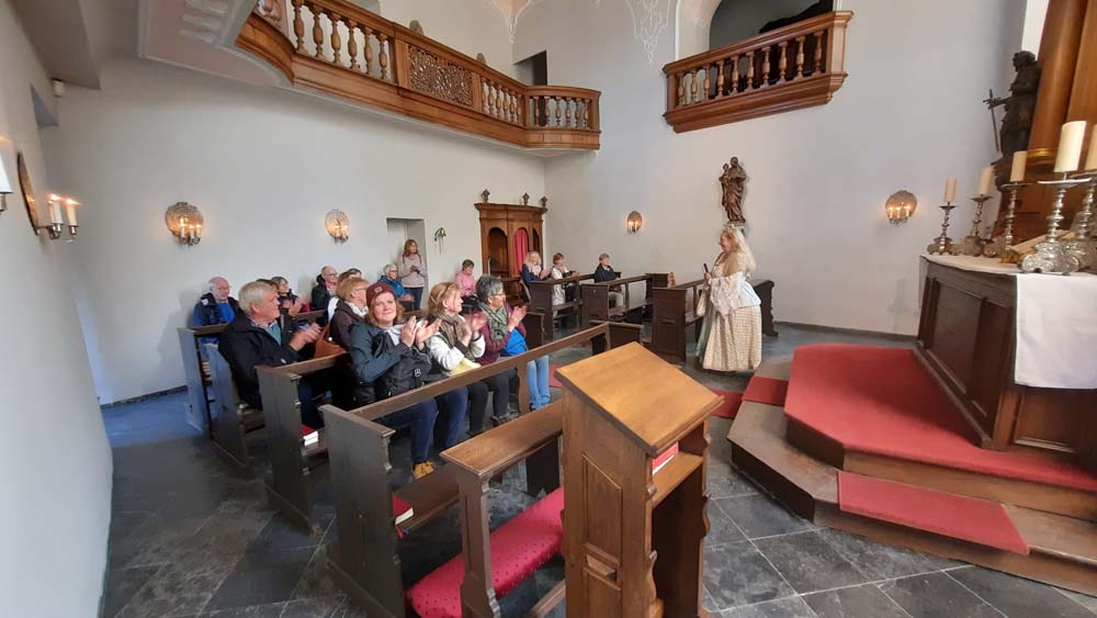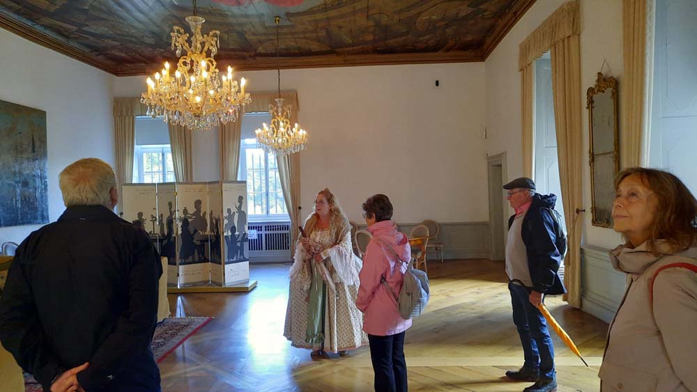 Zu Beginn unseres Besuches wurden wir „höfisch verführt“: zwei prächtig gekleidete Hofdamen geleiteten uns in die repräsentativen Räumlichkeiten der Residenz, plauderten über das höfische Schlossleben des frühen 19. Jahrhunderts und würzten die Vorträge mit humorigen Anekdoten etwa über die Garderobe des Fürstenehepaars oder manche „Machenschaften“ der bis zu 200 Bediensteten bei Hofe.