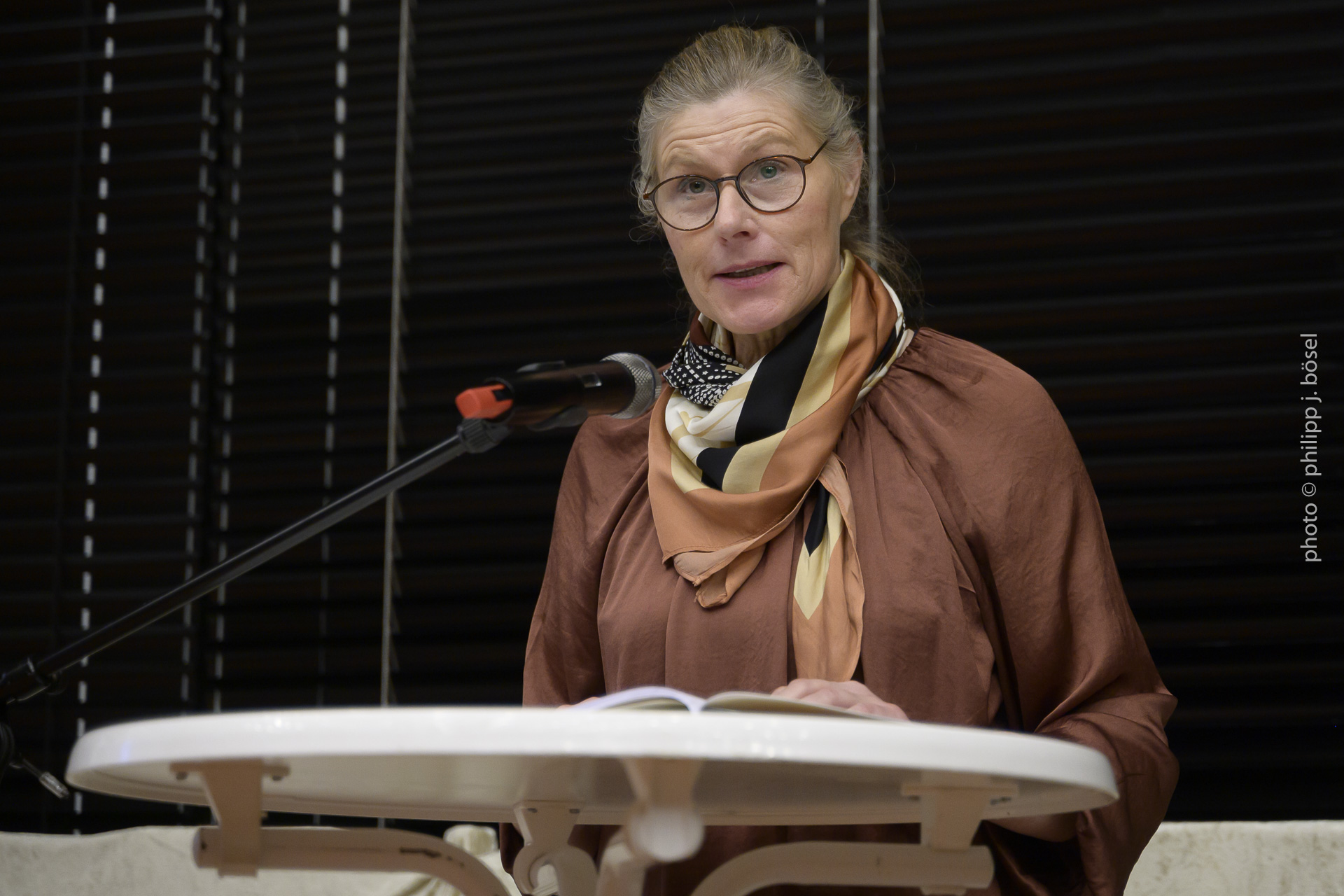 Im Rahmen der Vernissage lernten die Besucher:innen die Lebens- und Familiengeschichten dieser Menschen kennen. In eindrucksvoller Form wurden die Zeitzeugenberichte vorgetragen von Claudia Timpner (Theas-Intendantin, Schauspielerin, Sprecherin und Autorin) und dem Chef des Bensberger Puppenpavillons Gerd Pohl (Schauspieler, Autor, Regisseur und Rezitator).