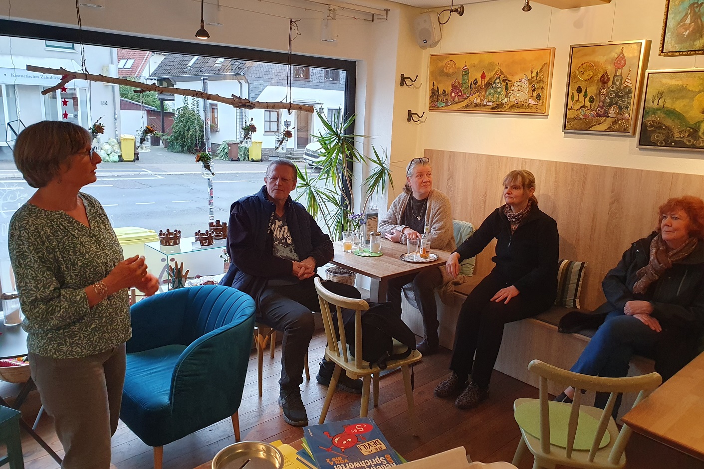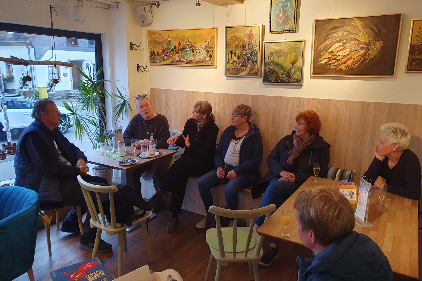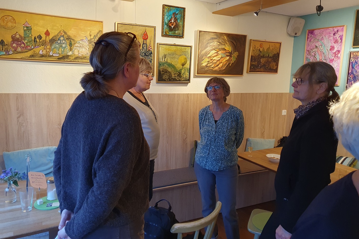 Auf der einen Seite im Café sind zu sehen die Bilder zum