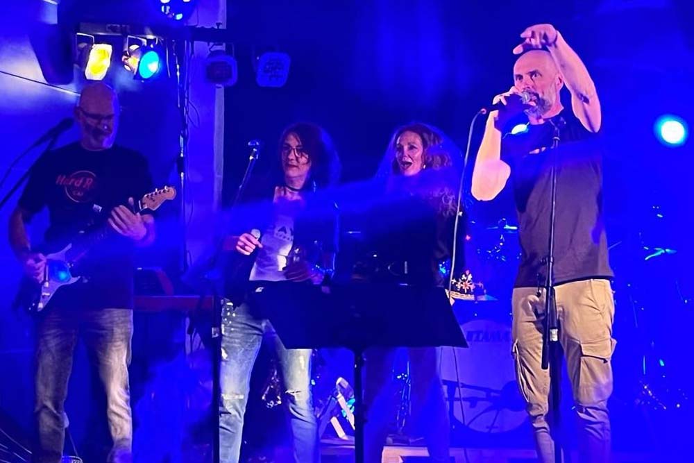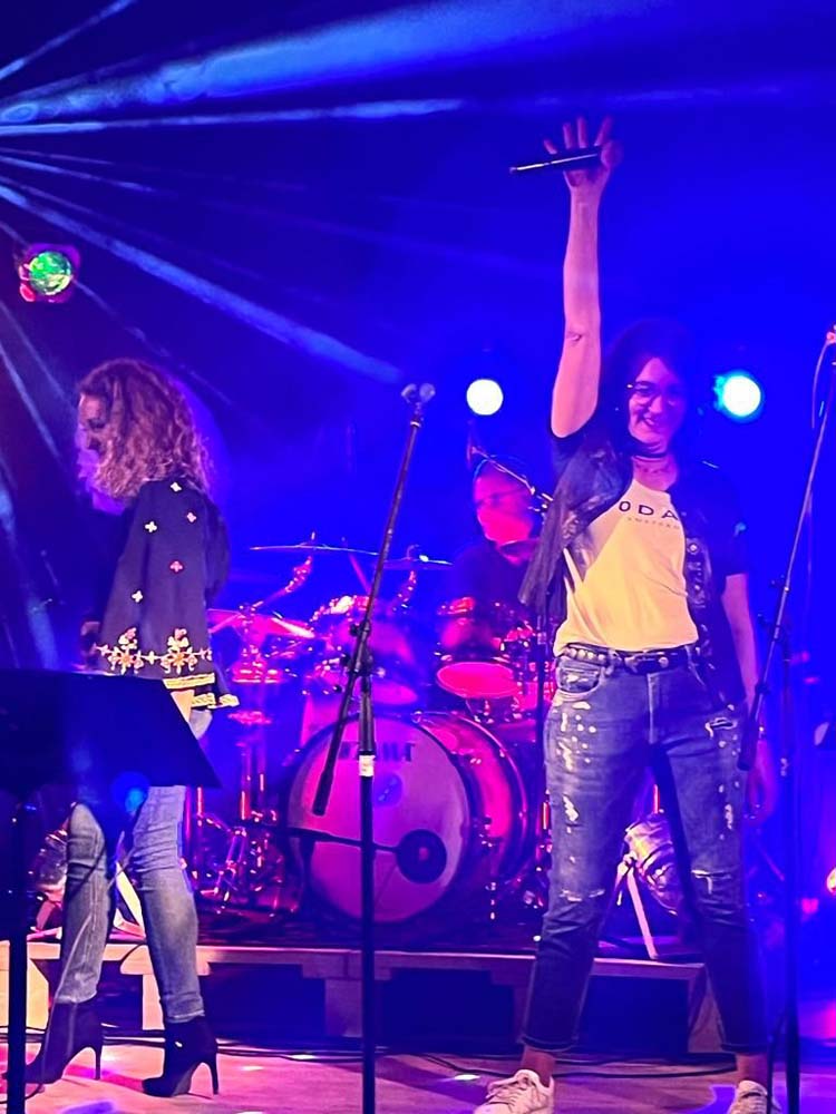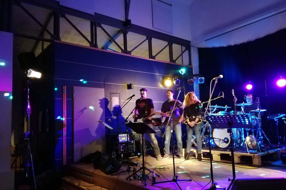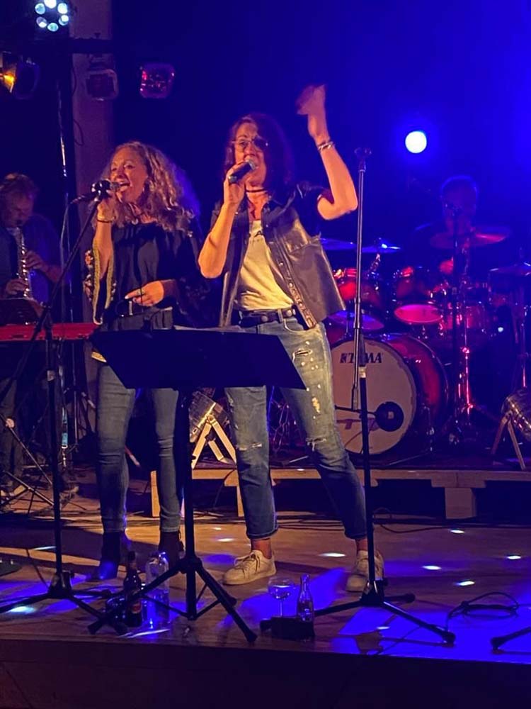 „Endlich mal wieder vor Publikum ein Konzert spielen“, sagte Julie Fremerey, Sängerin von handerCover, und so genossen die Gäste und die Band den Abend gemeinsam mit Songs u.a. von Queen, Police, Supertramp und Bruno Mars.