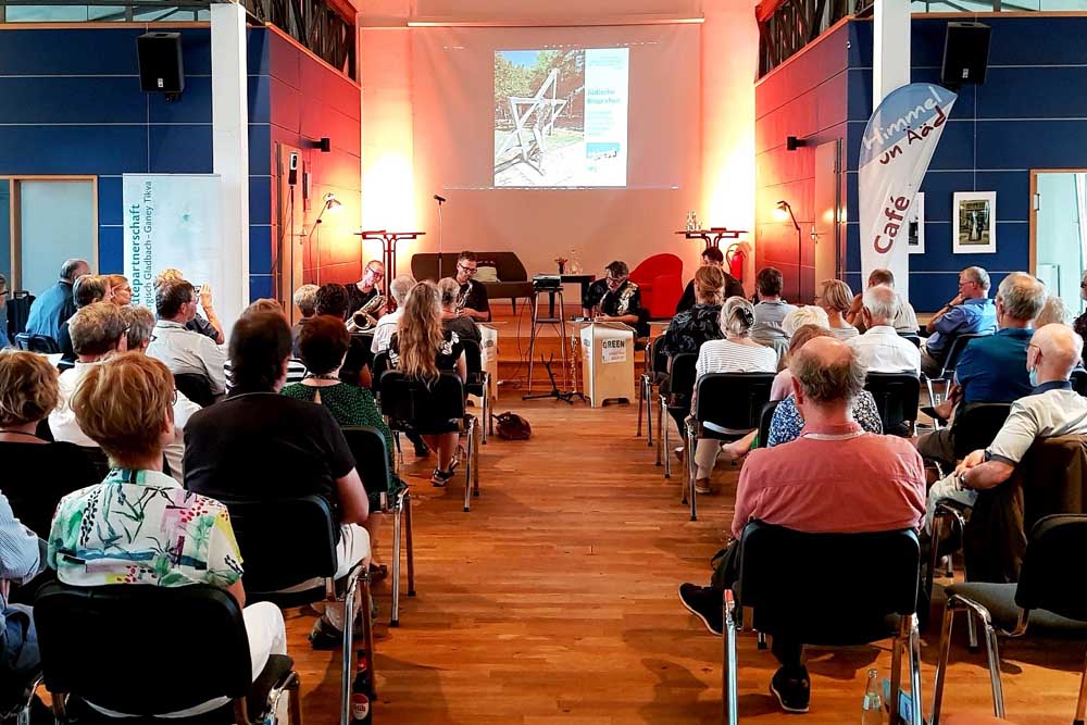 Eine Fotoausstellung will eröffnet werden, und so luden der Himmel un Ääd e.V. und der Städtepartnerschaft Ganey Tikva – Bergisch Gladbach e.V. am 23.08.2022 in den Gemeindesaal der Herz-Jesu-Kirche in Schildgen ein.