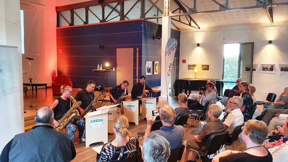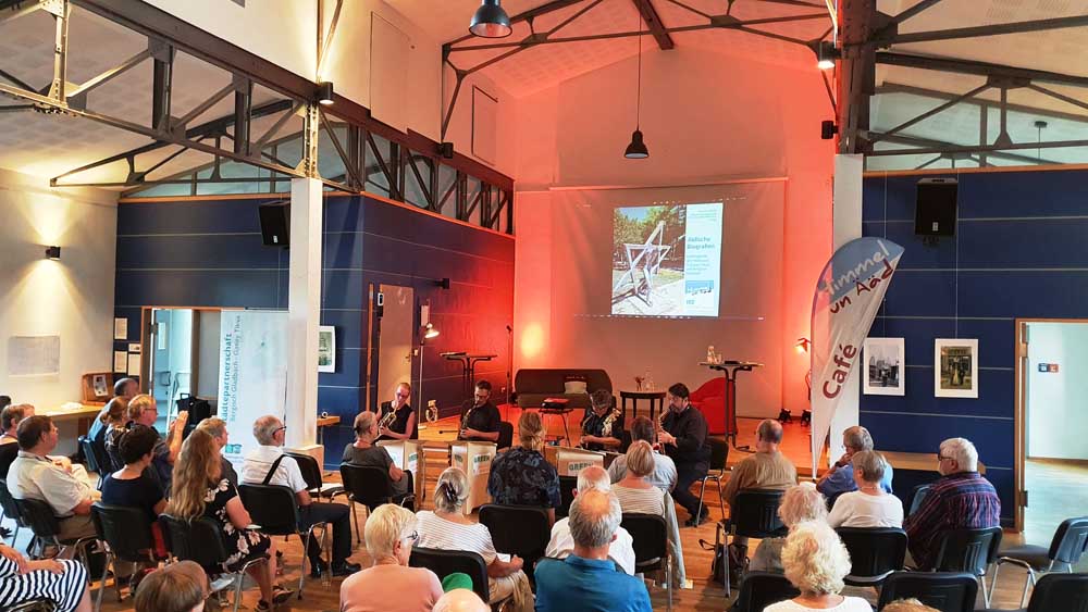 Durch das Programm der feierlichen Ausstellungseröffnung führte der Journalist und Moderator Tom Hegermann mit großer Sachkenntnis und viel Empathie. Claudia Timpner (Intendantin von Theas Theater) und Gerd Pohl (Chef des Puppenpavillons Bensberg) lasen Auszüge der Geschichten und machten die unterschiedlichen Personen lebendig. Diese Gänsehau-Momente wurden durch Musik des Green Smart Sax Quartett abgelöst und durch Interviews mit hinterbliebenen Töchtern ergänzt.