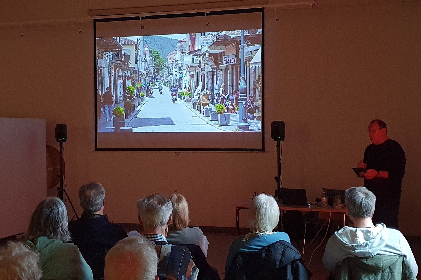 Er präsentierte seine fantastischen Aufnahmen und Drohnen-Videos in einer unterhaltsamen, mit griechischer Musik unterlegten Multivisions-Schau, immer kommentiert mit interessanten Hintergrundinformationen.