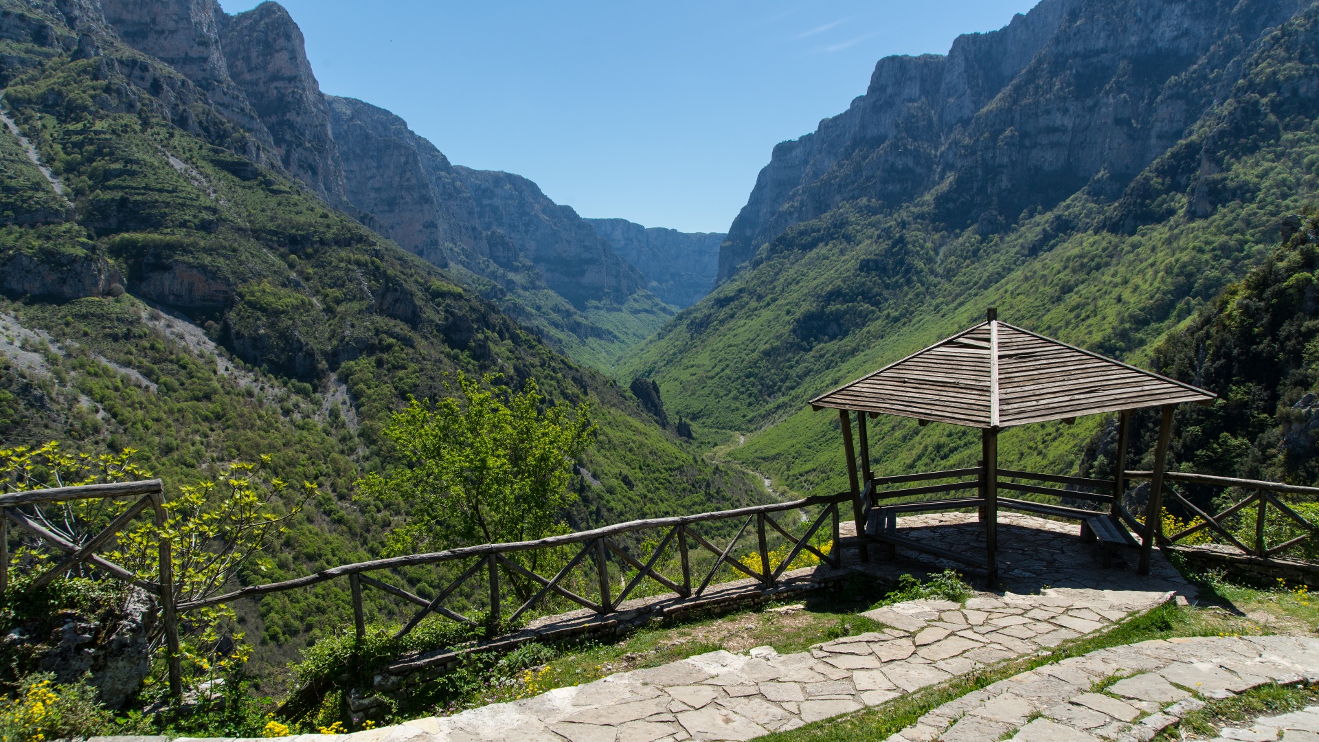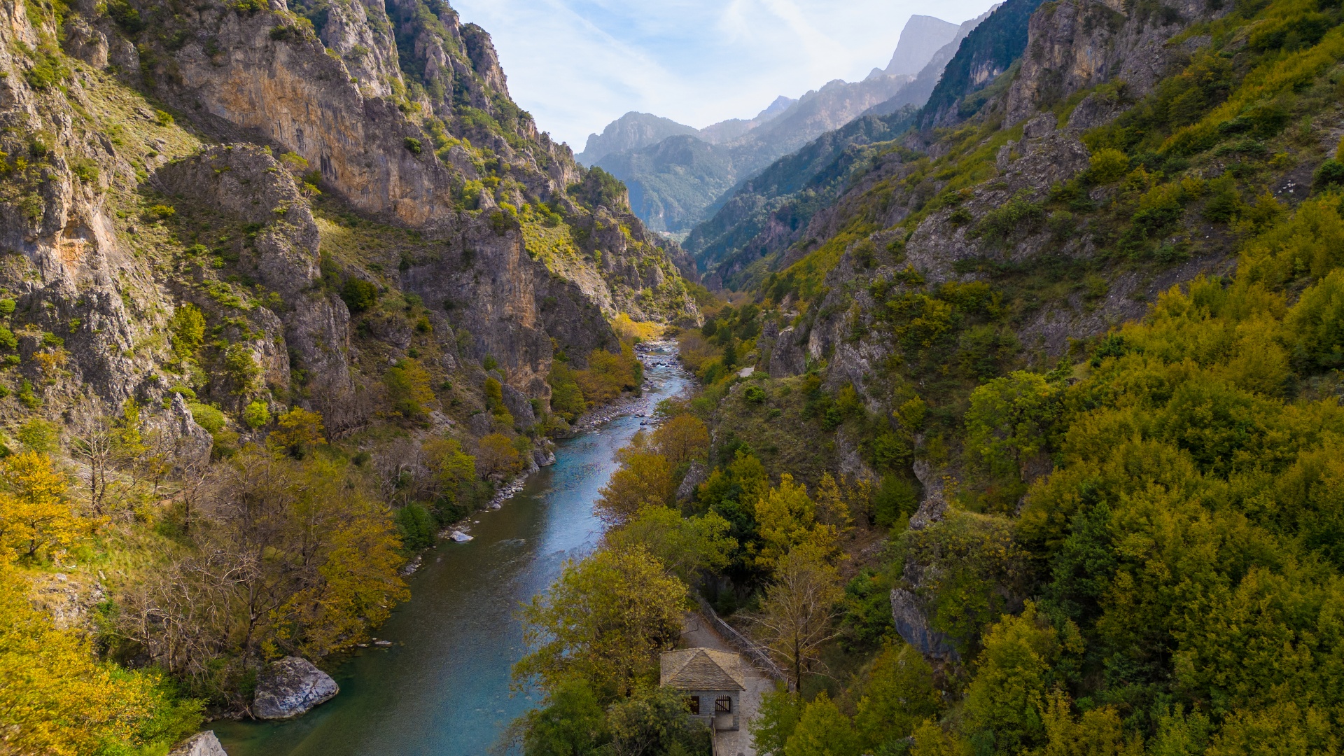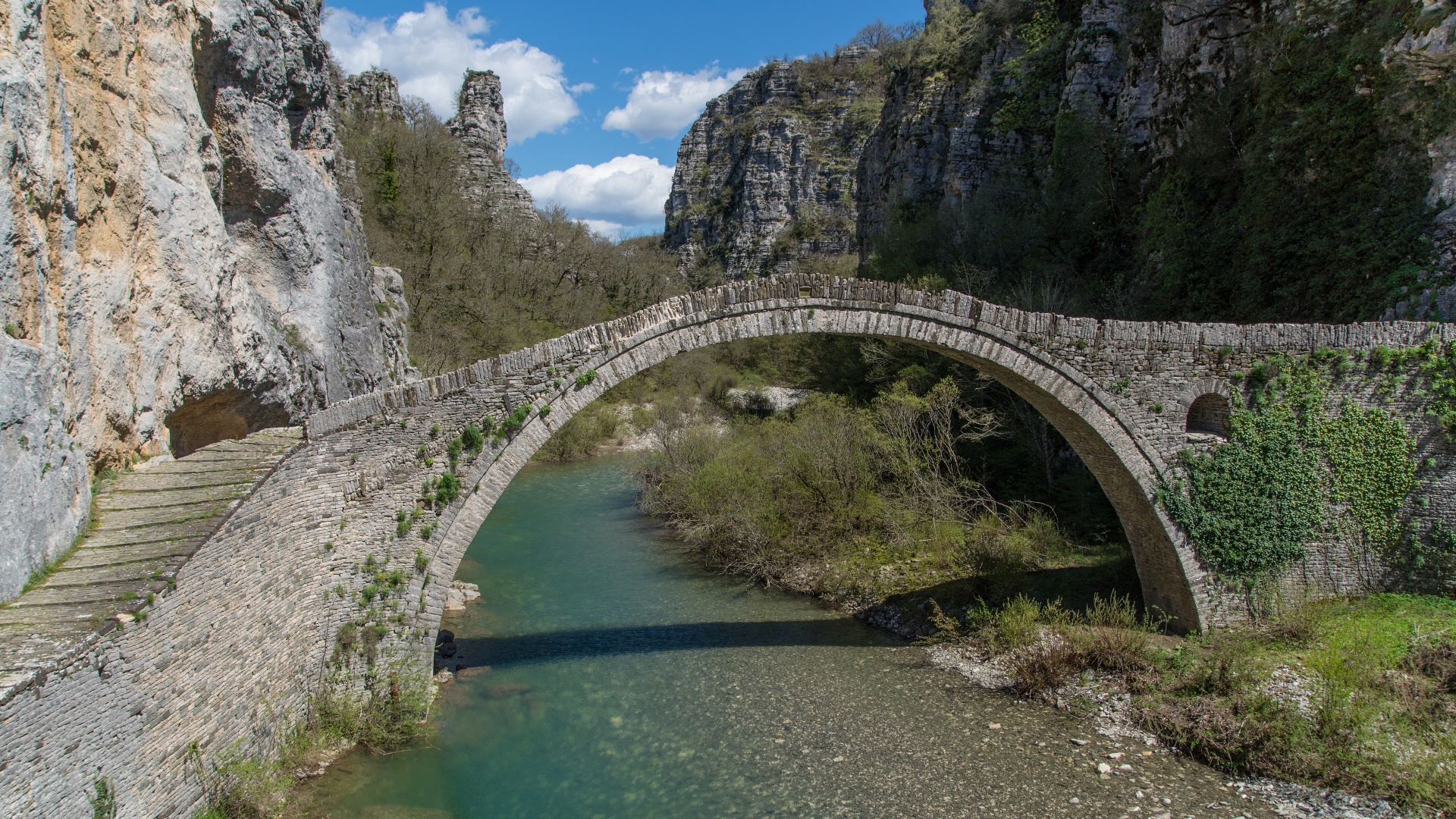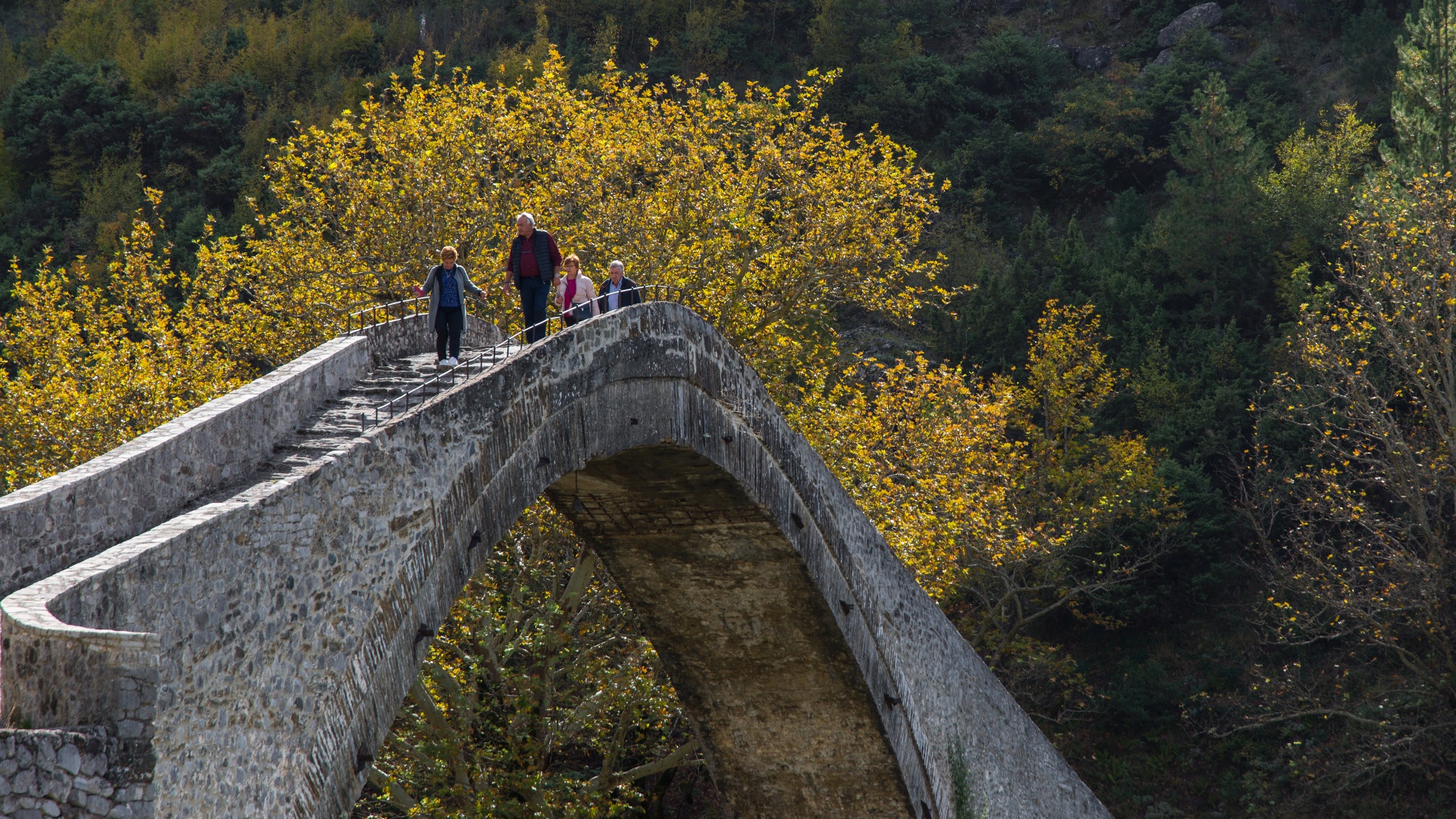 Die Region EPIRUS im Nordwesten Griechenlands bietet eine atemberaubende Landschaft mit mächtigen Bergen, tiefen Schluchten und schäumenden Flüssen. In den Naturschutzgebieten Zagoria und Tsoumerka gibt es viel zu entdecken! Zagoria heißt „Land hinter den Bergen“. Und so ist es auch. Die 46 Zagoriadörfer liegen versteckt zwischen den Bergen und an den Rändern tiefer Schluchten. Osmanische Spitzbogenbrücken und unzählige Steinpfade, die Kalderimi, haben die Dörfer einst verbunden. Sie haben den Handel der Dörfer untereinander ermöglicht. Heute sind es gern genutzte Wanderwege.