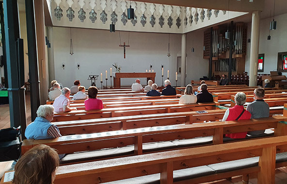 Nach 9 Stunden, ausführlich dem Schaffen Böhms in Schildgen gewidmet, waren Besucher wie Veranstalter einmal mehr gewiss, dass es ein ganz besonderes Bauwerk ist, in den der Baumeister Gottfried Böhm sie seit 60 Jahren einlädt, ihre Gottesdienste zu feiern.