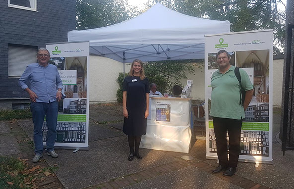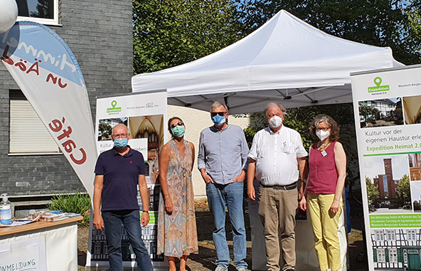 „Danke für die gelungene Kooperation in Sachen „Expedition Heimat 2.0“ dem Team vom Kulturamt des Rheinisch-Bergischen Kreises um Frau Loesch, Herrn Andres vom kath. Bildungswerk Rhein-Berg, Frau Ditscheid von der Katholischen Familienbildungsstätte sowie Frau Kurth und Herrn Dr. Kierdorf für Vortrag und Kirchenführungen“; so Achim Rieks, Mitglied des Kirchenvorstandes Herz Jesu Schildgen und Vorsitzender des Himmel un Ääd e.V.