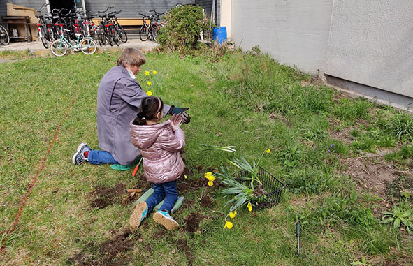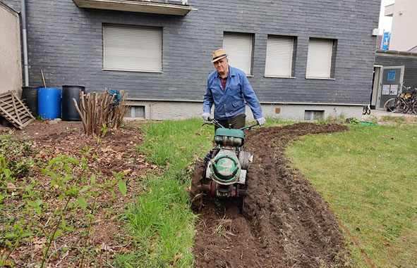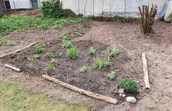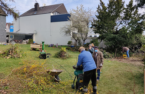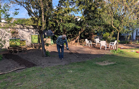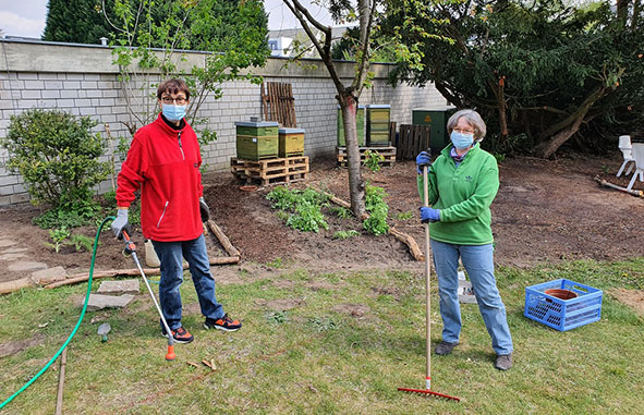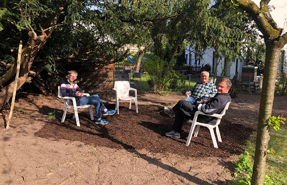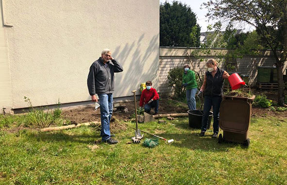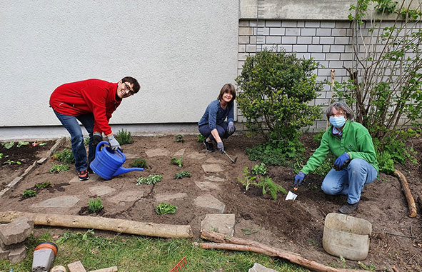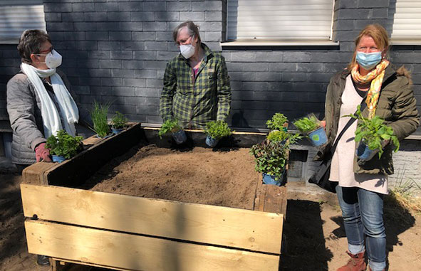 Die Gartenarbeit macht Freude. So können wir an frischer Luft und mit der notwendigen Vorsicht ein wenig Gemeinschaft erleben. Es ist schön, mal wieder was im Team zu machen.