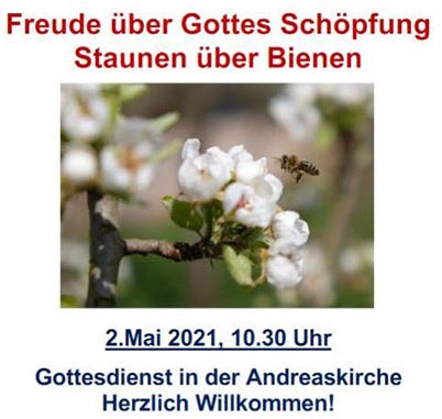 Einen Bienengottesdienst gibt es in der Andreaskirche am 2. Mai um 10.30 Uhr; Anmeldung erforderlich www.andreaskircheschildgen.church-events.de