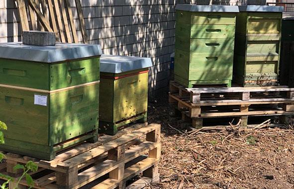 Seit einigen Tagen sind unsere Bienen aus ihrem Ausweichquartier zurück. Sie fliegen fleißig bei dem sonnigen Wetter und fühlen sich schon wieder ganz zu Hause. Vor den Bienenstöcken wird Phacelia eingesät, so haben sie Nahrung direkt vor der Haustür.