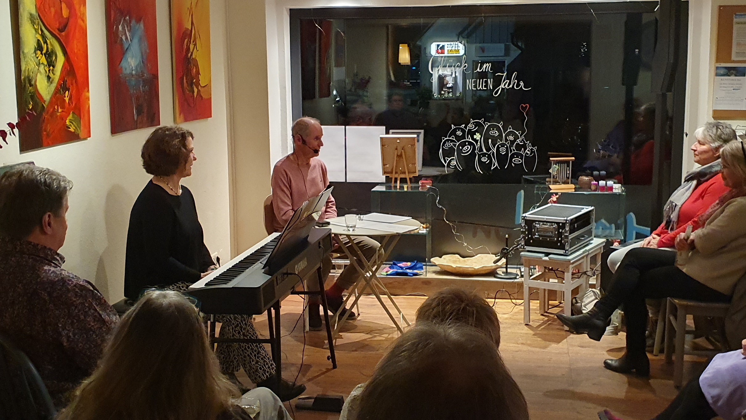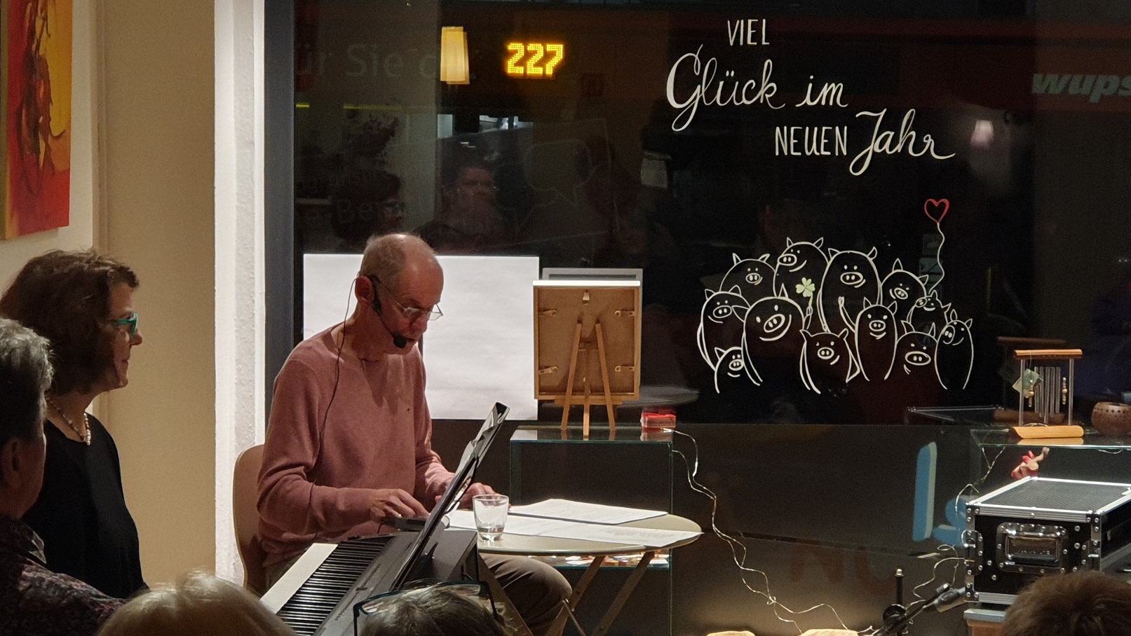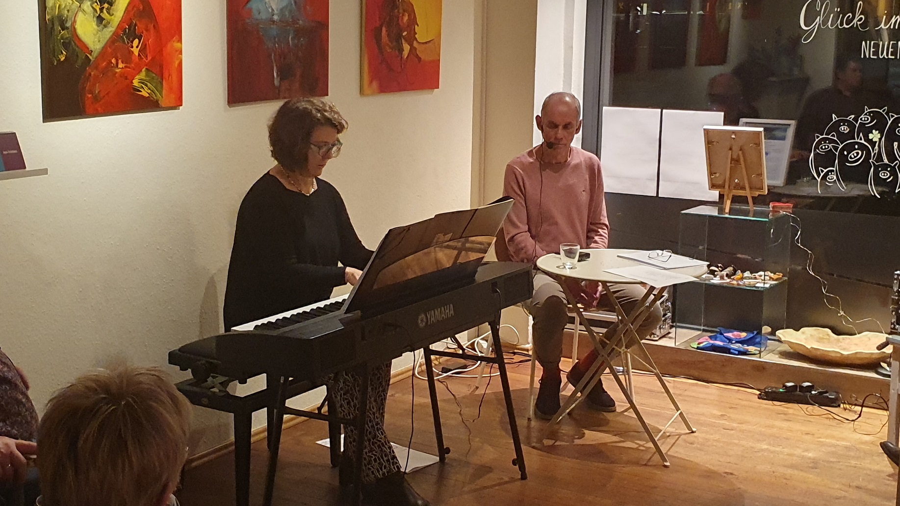 Musikalisch begleitet wurde der Abend von Gabriele Helpap, die einfühlsame Stücke auf ihrem E-Piano virtuos präsentierte und so die Stimmung des Romans perfekt ergänzte.