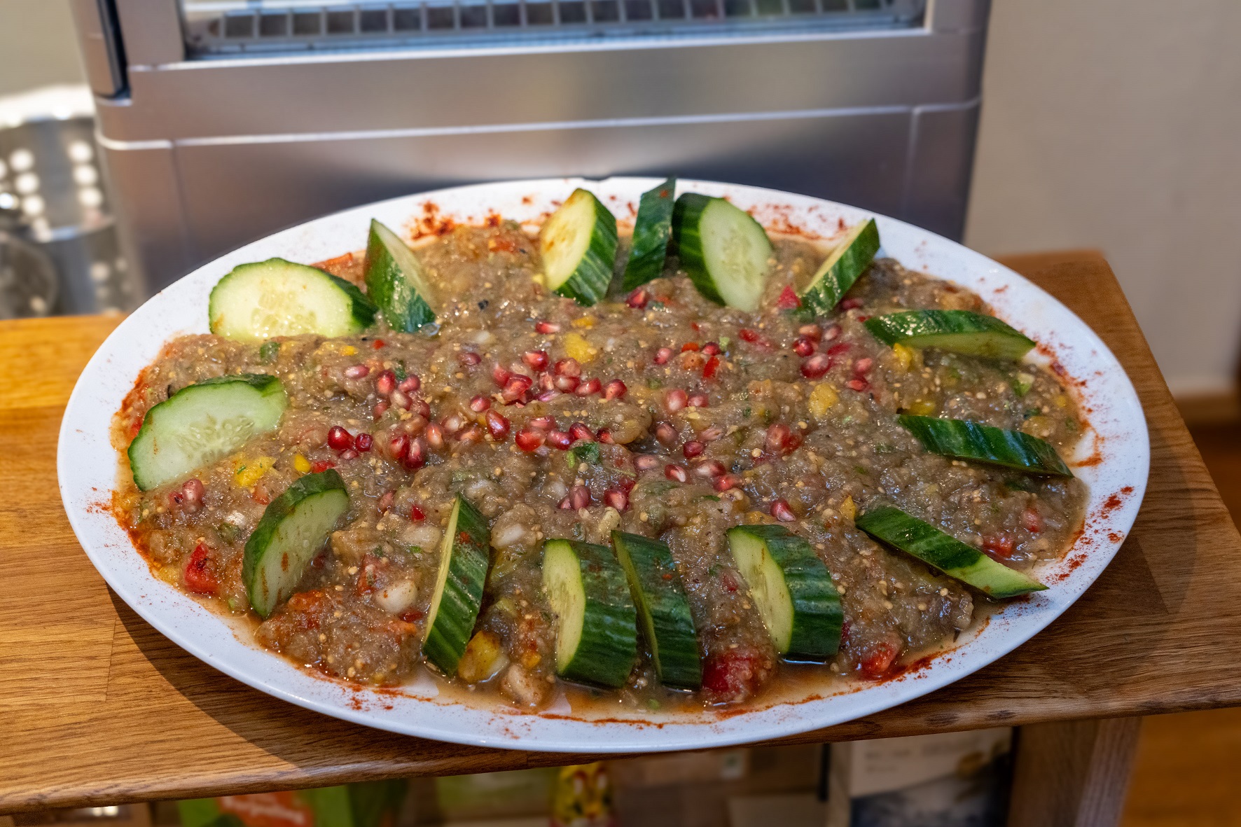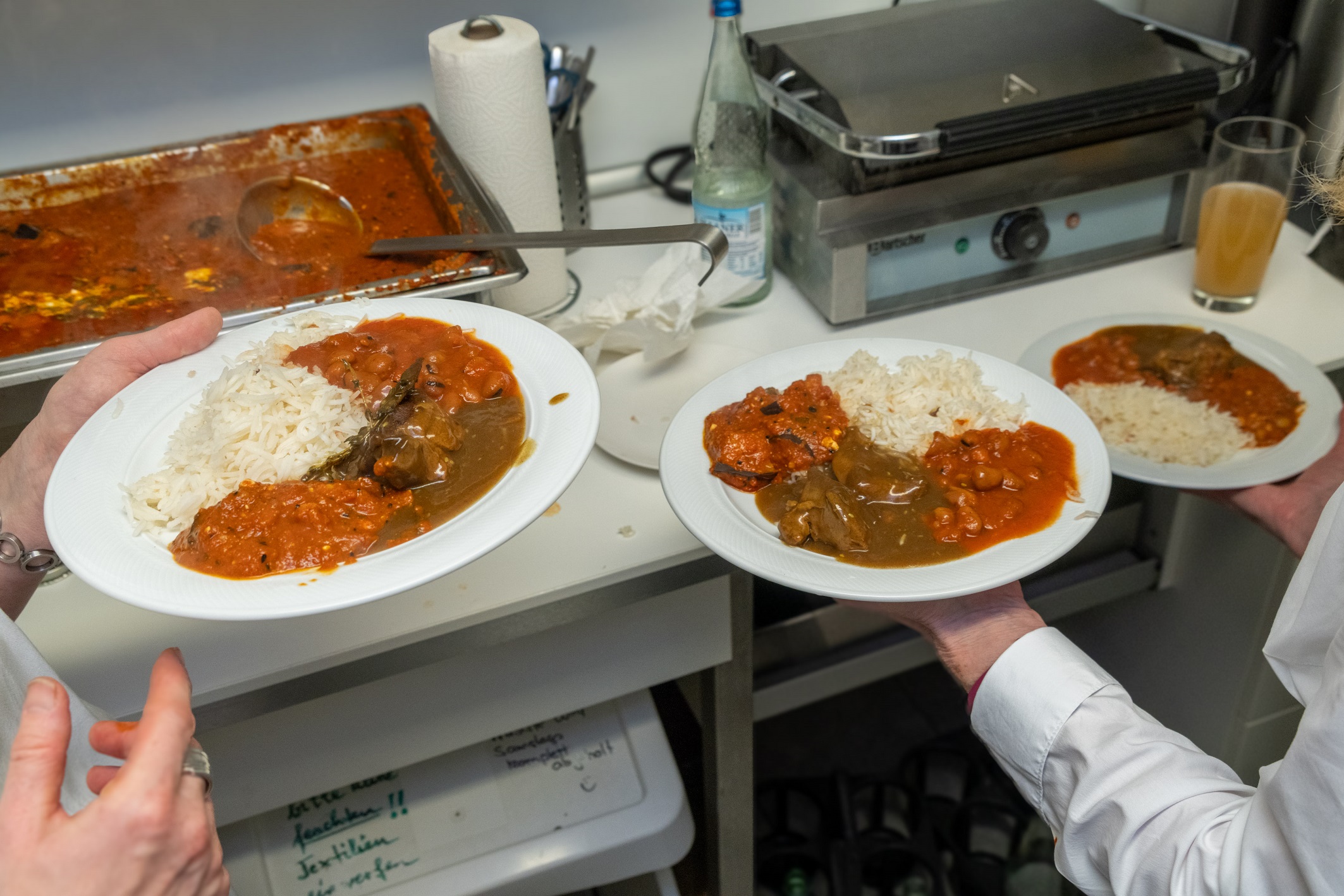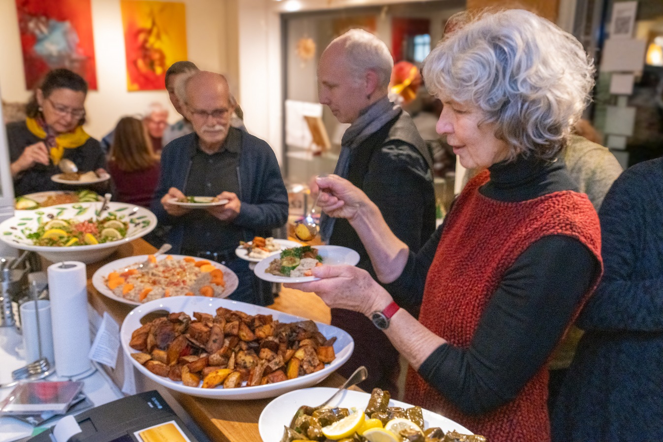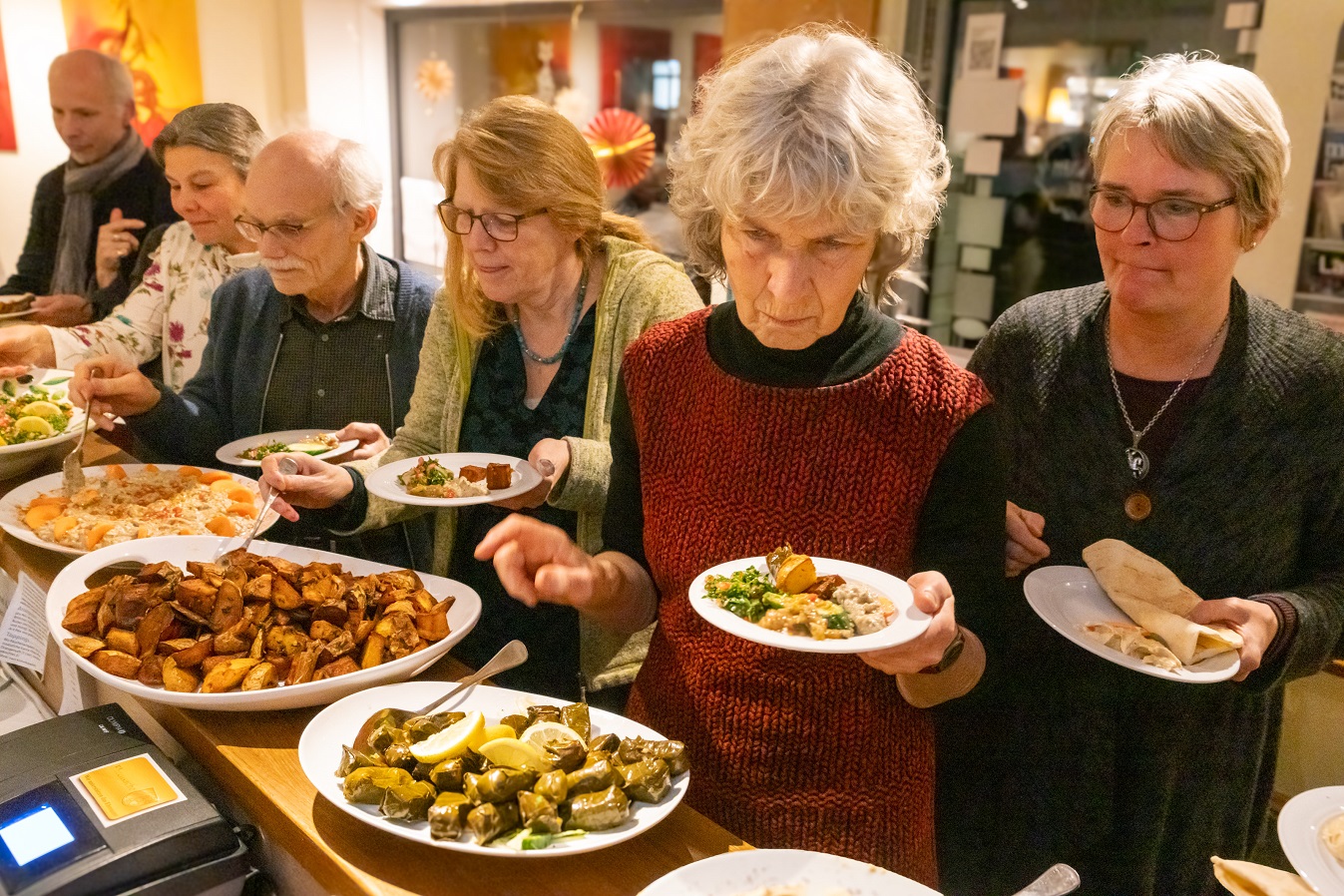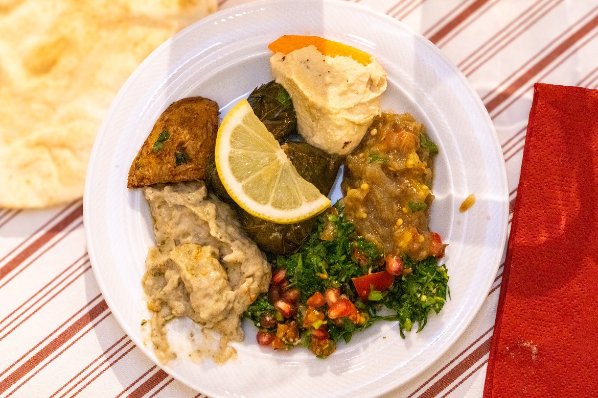 Der Koch des Kölner Restaurants „Bethlehem” hatte für die heutige Gästeschar im ausverkauften H&Ä-Begegnungscafé aus der authentisch palästinensischen Küche gezaubert.