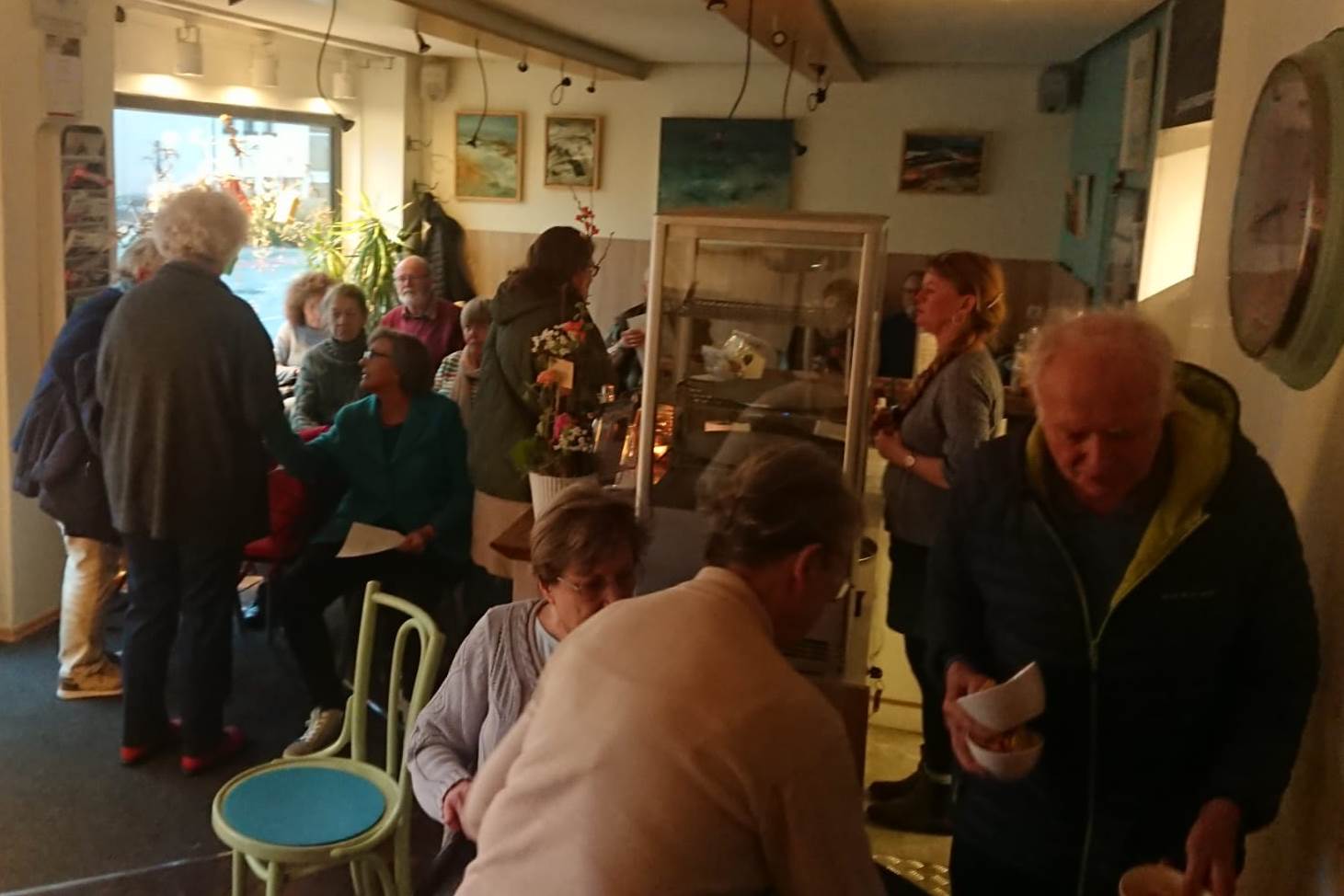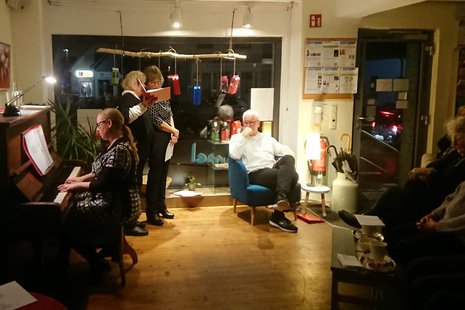 Es war ein großartiger Nachmittag – die Gäste im vollbesetzten Café waren begeistert. Die Düsseldorfer Gruppe Mimento hatte einen kurzweiligen Auftritt mit bekannten und auch weniger bekannten Liebesgedichten und Liebesbriefen der beiden Schriftsteller und Dichter vorbereitet und toll in Szene gesetzt.