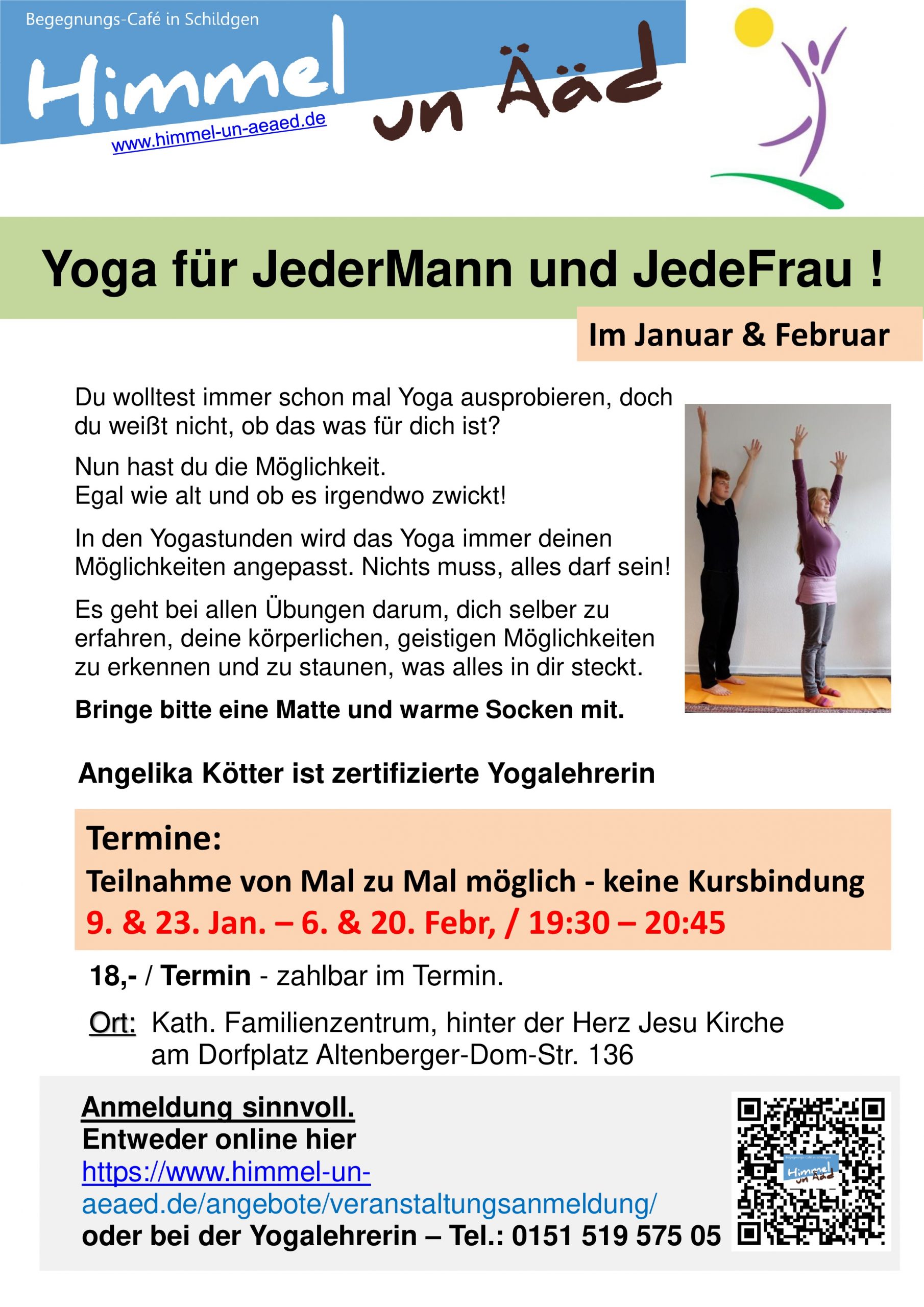 Yoga-Abend mit der zertifizierten Yogalehrerin Angelika Kötter – im Fam.-Zentrum.