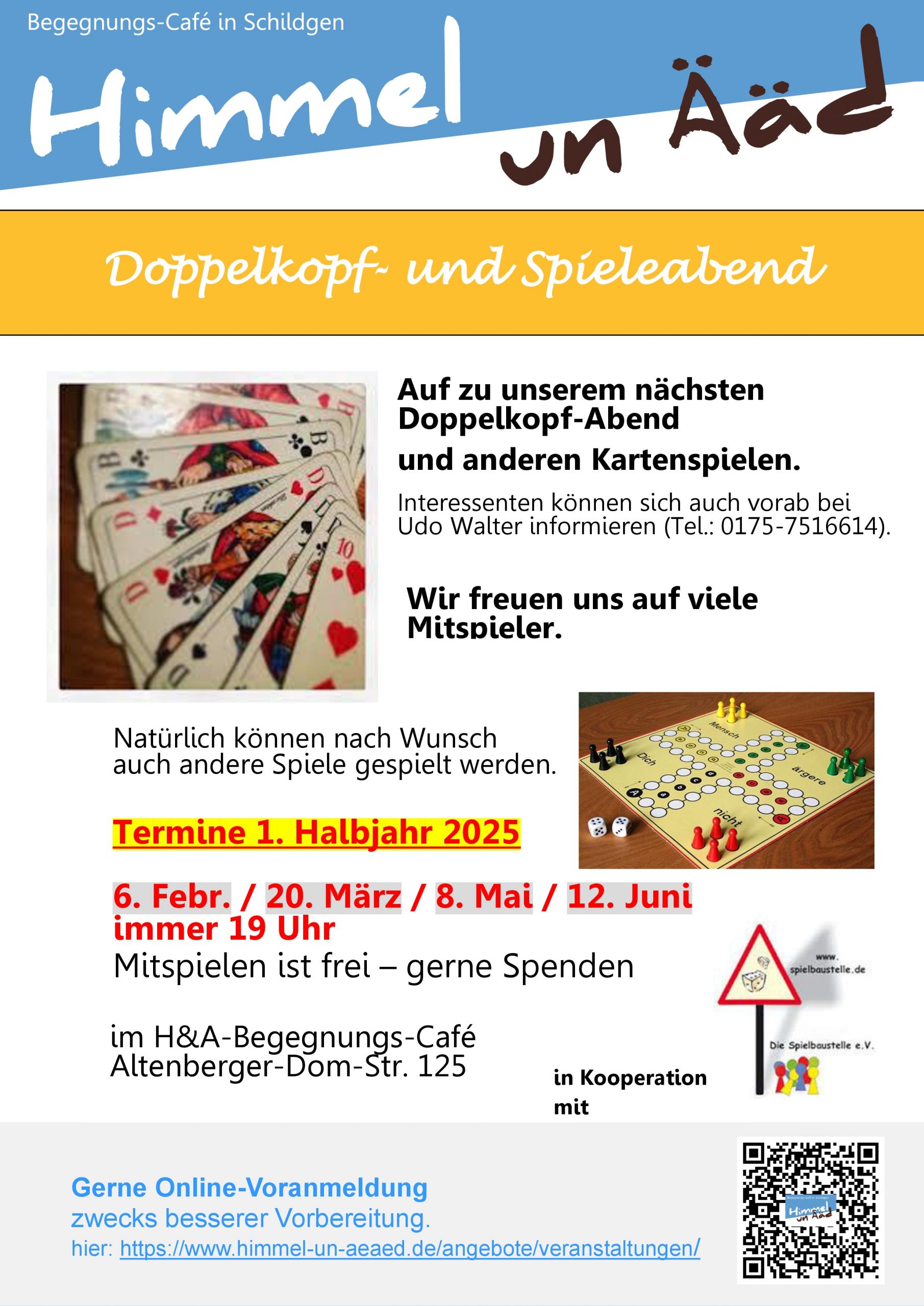Wir freuen uns auf viele Mitspieler. Kommen Sie vorbei und spielen Sie mit.
