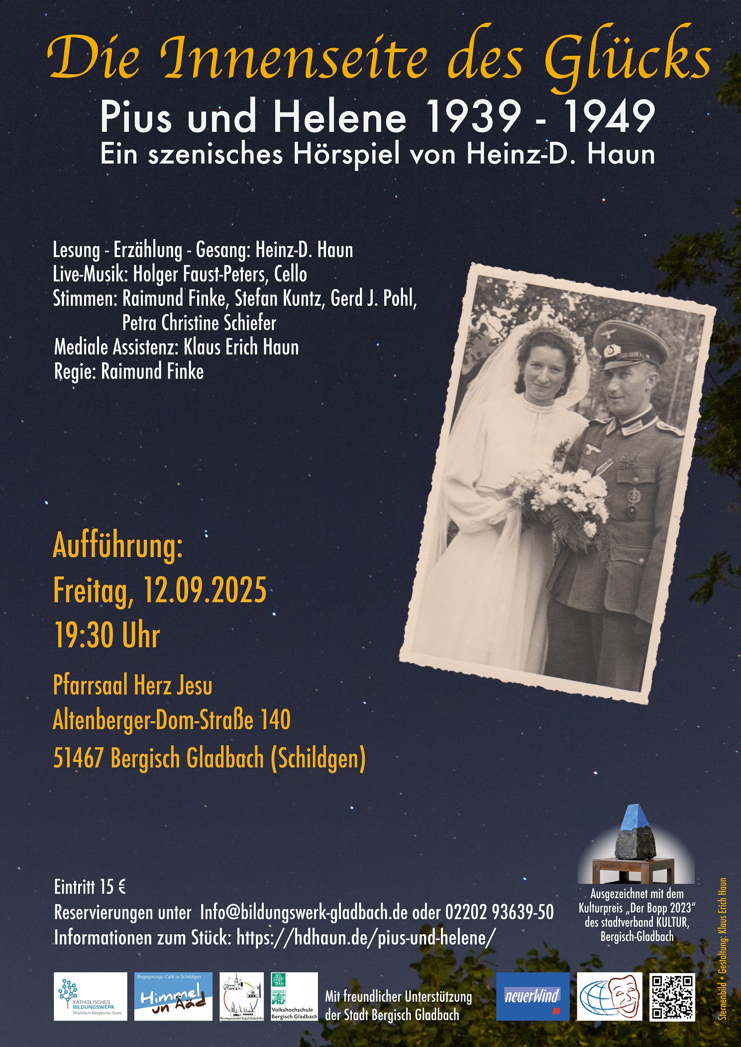 Heinz-D. Haun arbeitet seit Jahren die Geschichte seiner Eltern während der Weltkriegsjahre und der ersten Nachkriegszeit auf. Aus einer Fülle an Briefen und Fotografien aus dem Nachlass seiner Eltern und historisch verbürgtem Material entstand dieses Szenische Hörspiel.