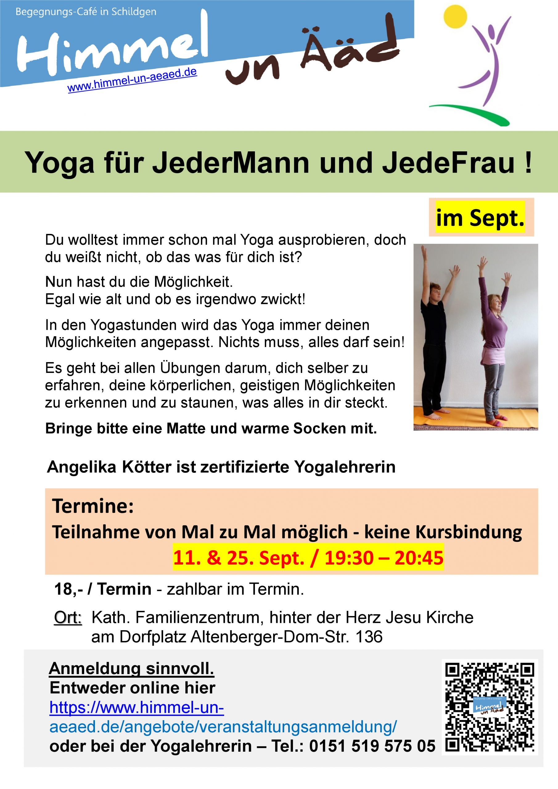 Yoga-Abend mit der zertifizierten Yogalehrerin Angelika Kötter; im Fam.-Zentrum.