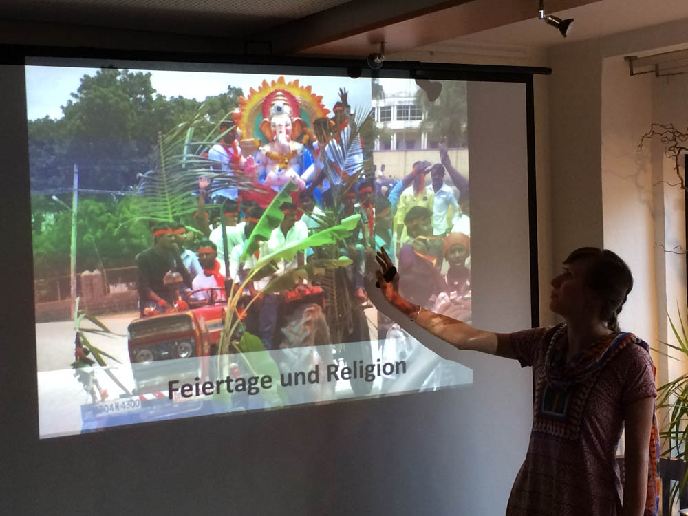 An diesem Abend berichtete Elisa Köhr nicht nur über „ihr Jahr“ in Indien – Mitarbeit in einem Projekt „klimaneutrales Dorf“ im Koppal District – sondern gab auch sehr interessante und persönliche Einblicke in ihre Vorstellungen von Entwicklungsarbeit und den Sinn und Nutzen von Freiwilligenarbeit im Rahmen solcher Projekte.