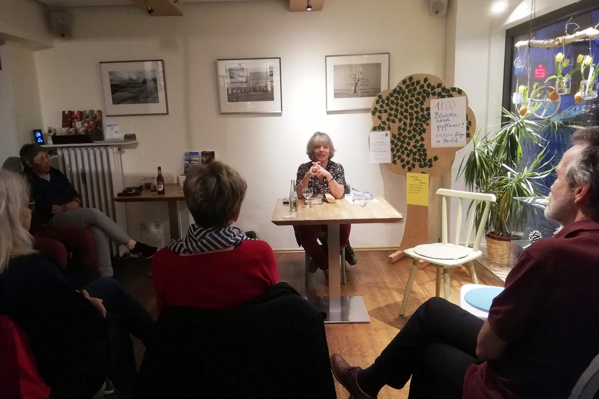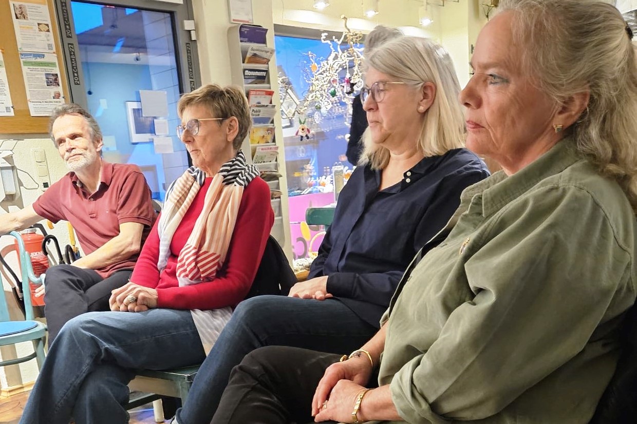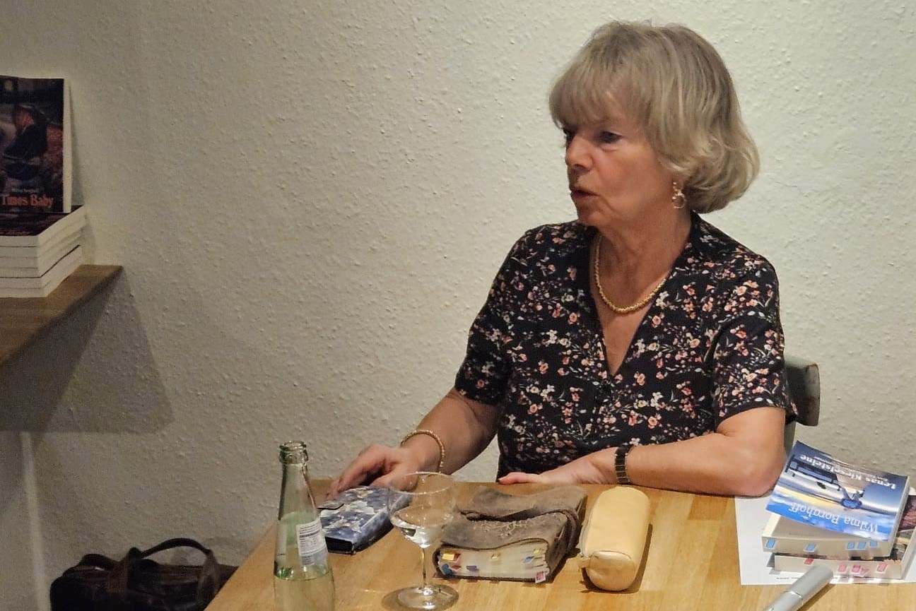 Im Café Himmel un Ääd stellte sie einem kleinen Kreis aufmerksamer Zuhörer:innen ihre beiden letzten Bücher vor – „Timos Baby“ (ihr inzwischen fünftes Buch) und den Roman „Lenas Kieselsteine – ein fabelhafter Sommer“ (erschienen 2023).