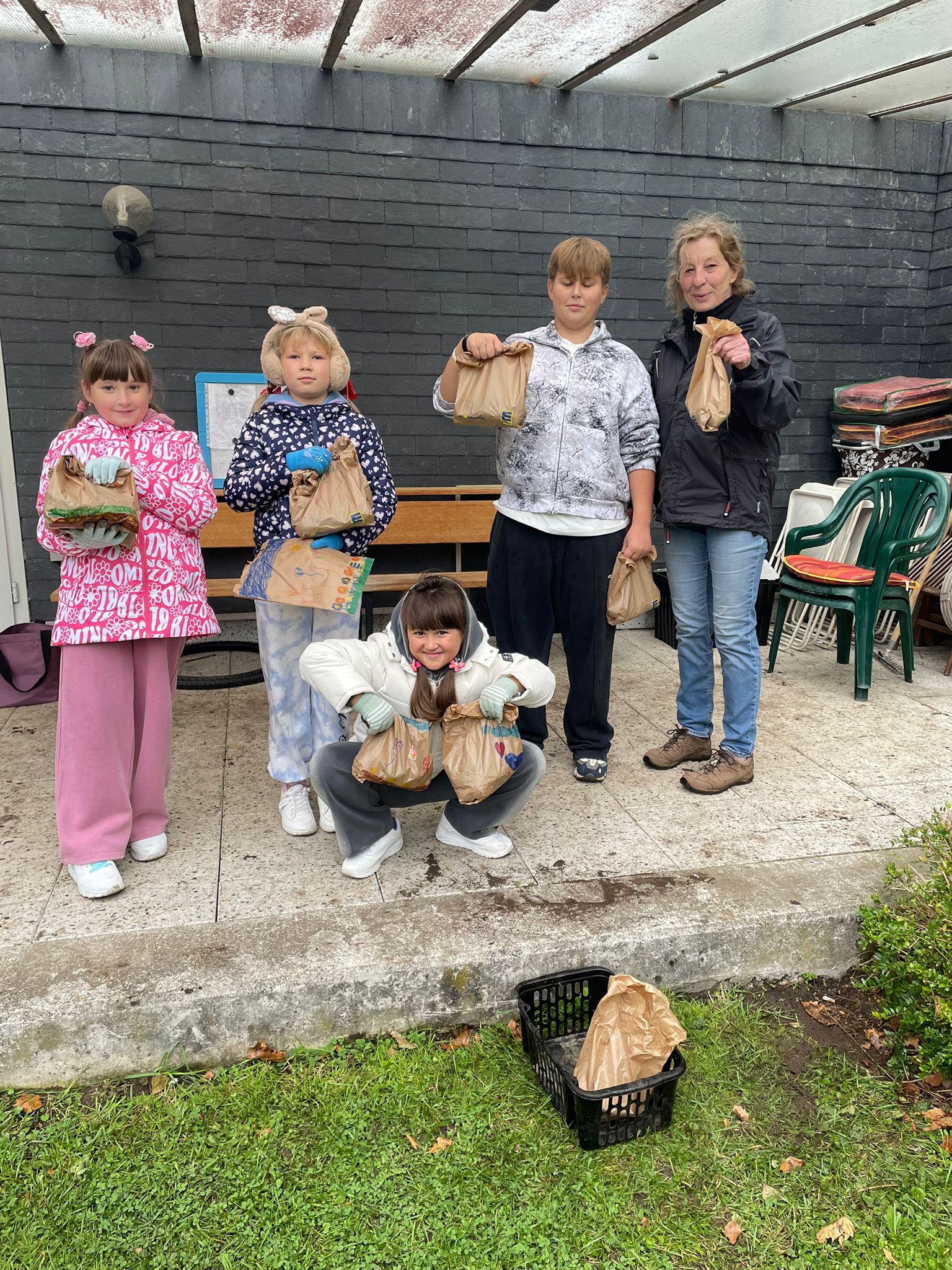 Die Kinder bemalten wunderschöne Tüten, in denen alle stolz die Ernte nach Hause trugen und sich jetzt auf das gemeinsame Essen freuen – mittlerweile eine so schöne gemeinsame Tradition, die Groß und Klein viel Freude macht!