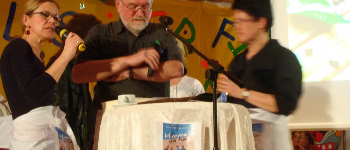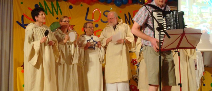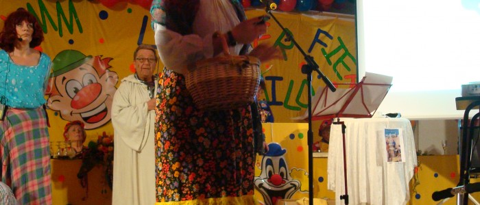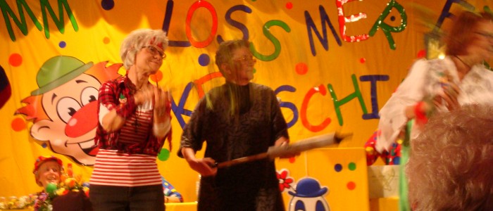 kfd – keine Frau daheim – so kommt es vielen vor. Diese Frauenpower und gute Laune über die Generationen hinweg begeistern immer wieder. Das ist Ökumene und viel mehr. Wahrscheinlich fügte sich auch deshalb die Idee von Himmel un Ääd so nahtlos in diesen Nachmittag. Und nicht nur in den Nachmittag, an dem zu Gunsten von Himmel un Ääd die selbstgefertigten Karnevals-Sticker verkauft wurden. Auch in der Möhnemess – nit nur för Möhne – waren die Wiever un och die Kääls dem Himmel nah und spendeten für die Kollekte, um Himmel un Ääd auf die Füße zu helfen.